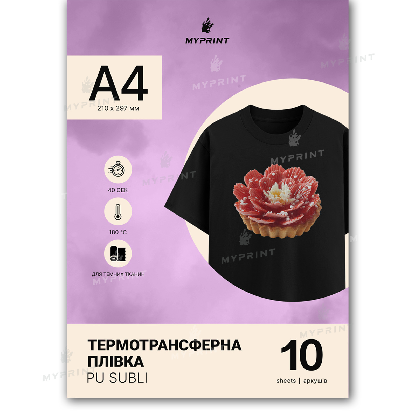 Характеристики My Print PU Subli Transfer Film for Sublimation Printing for Dark Fabrics, A4, 10 sheets (11813)