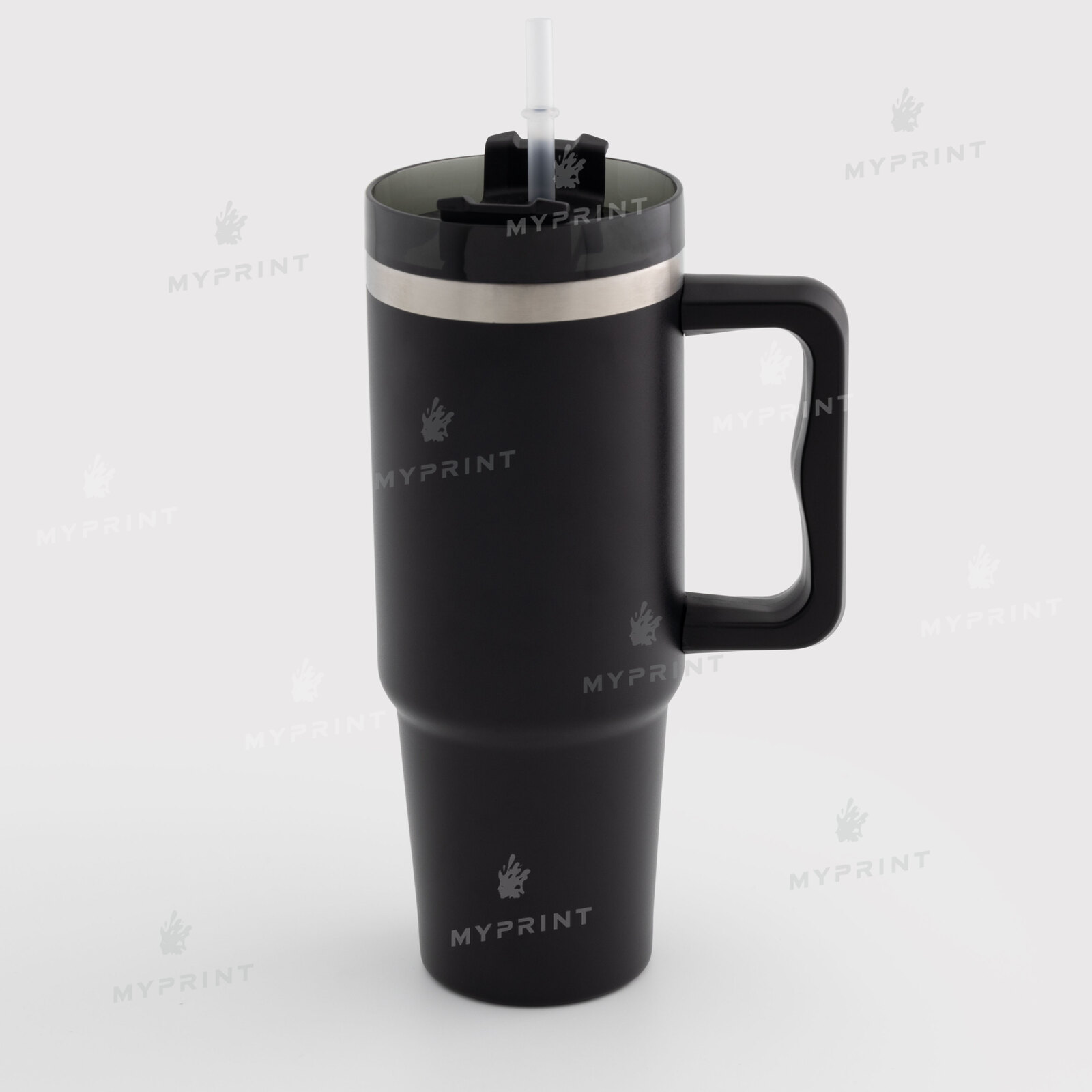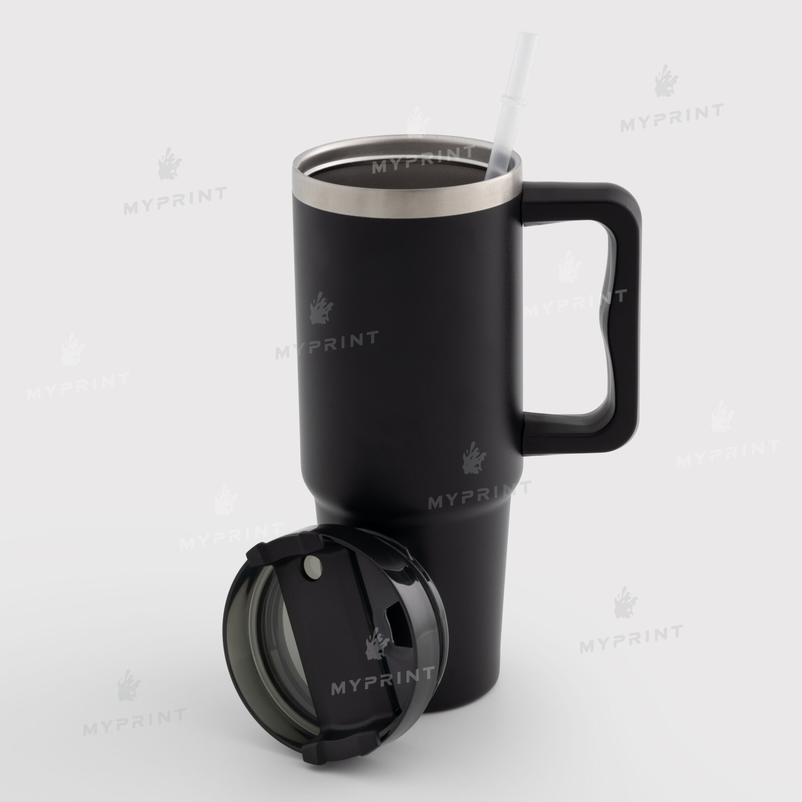 Thermal mug with a black handle, matte black 900 ml (10578)