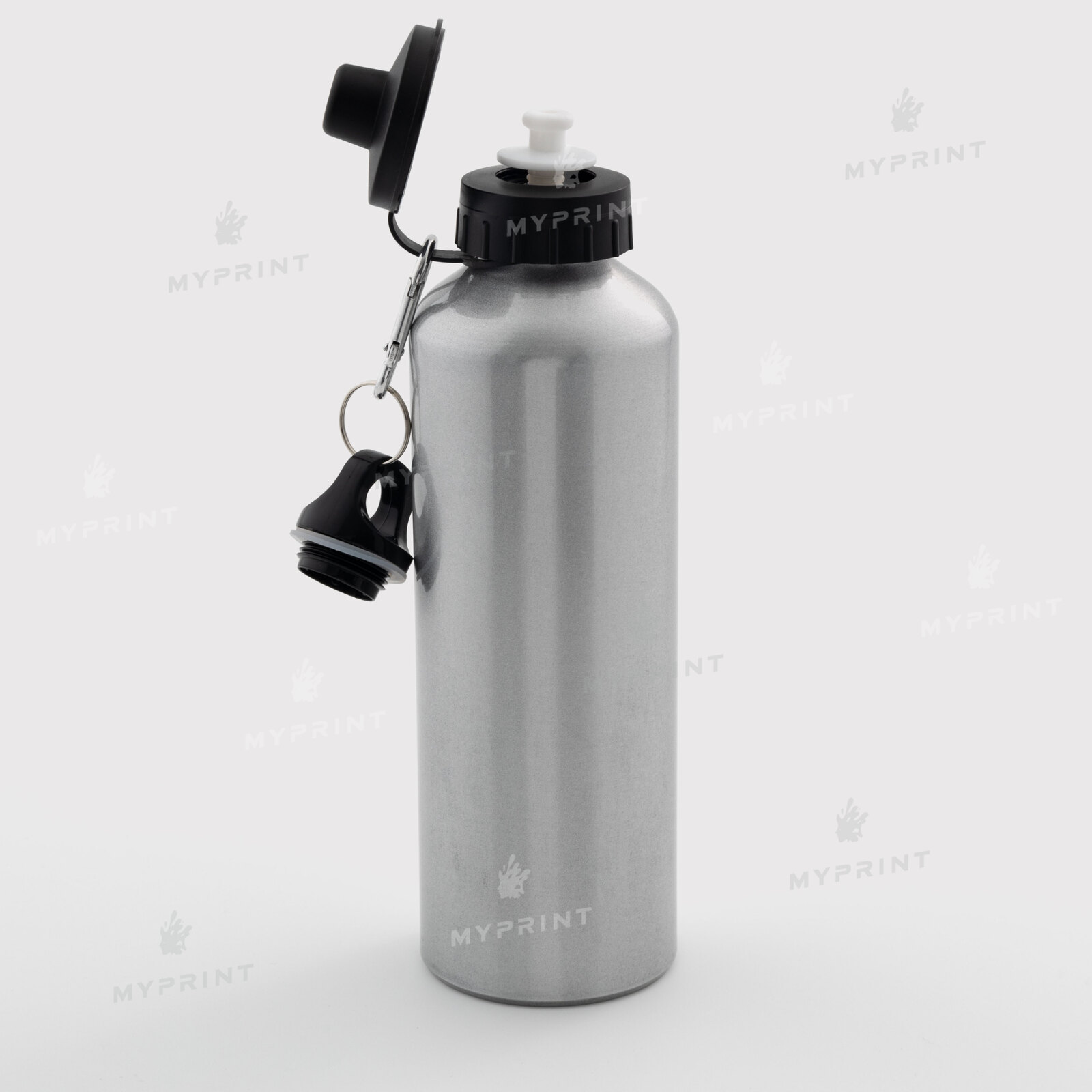 The process is complete. Sports flask for sublimation with two silver lids (750 ml) is now not just a blank, but a finished product with a unique image or photo.