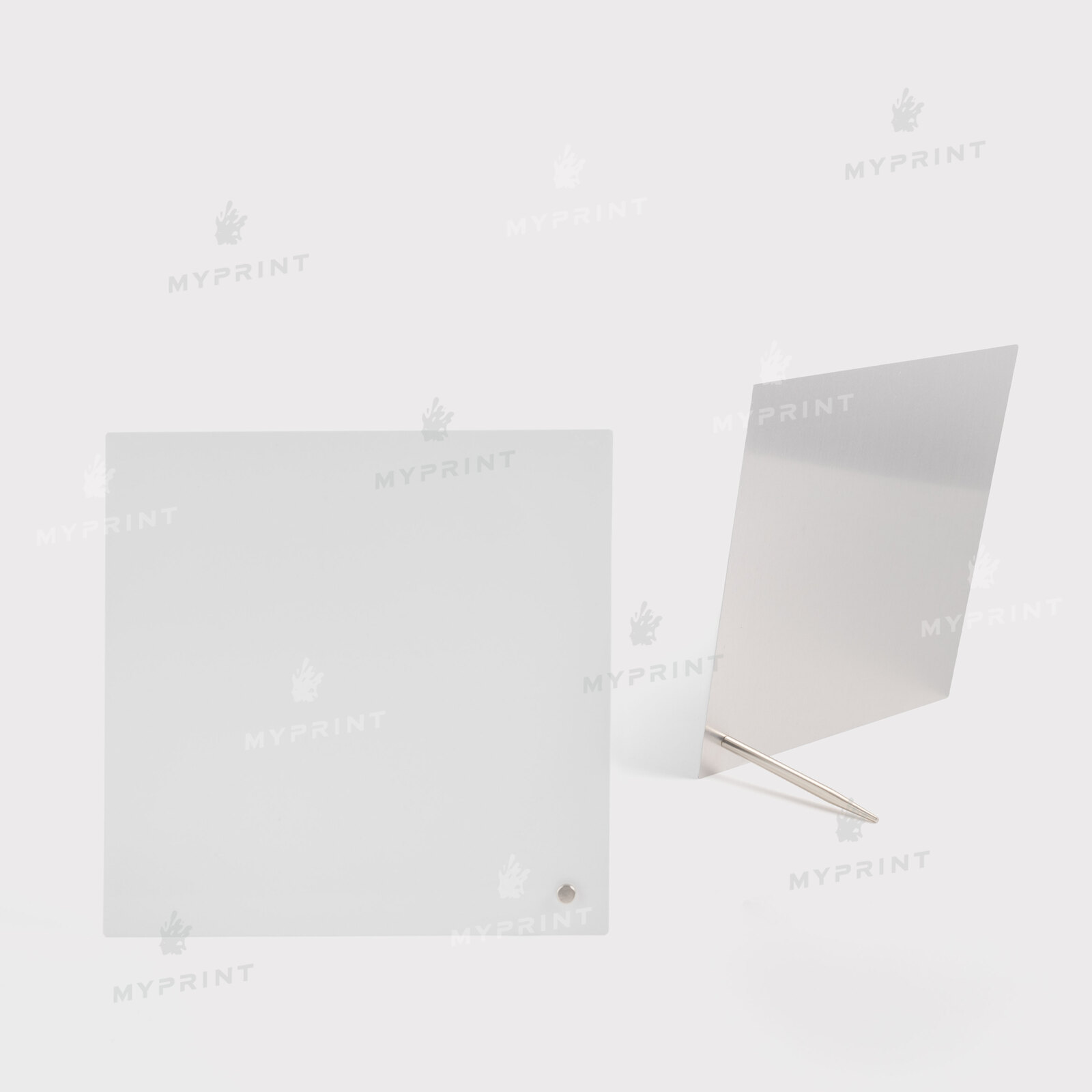 Description Photo frame for sublimation, metal with metal support, glossy white, 203.2*203.2 mm, thickness 0.65 mm (12226)