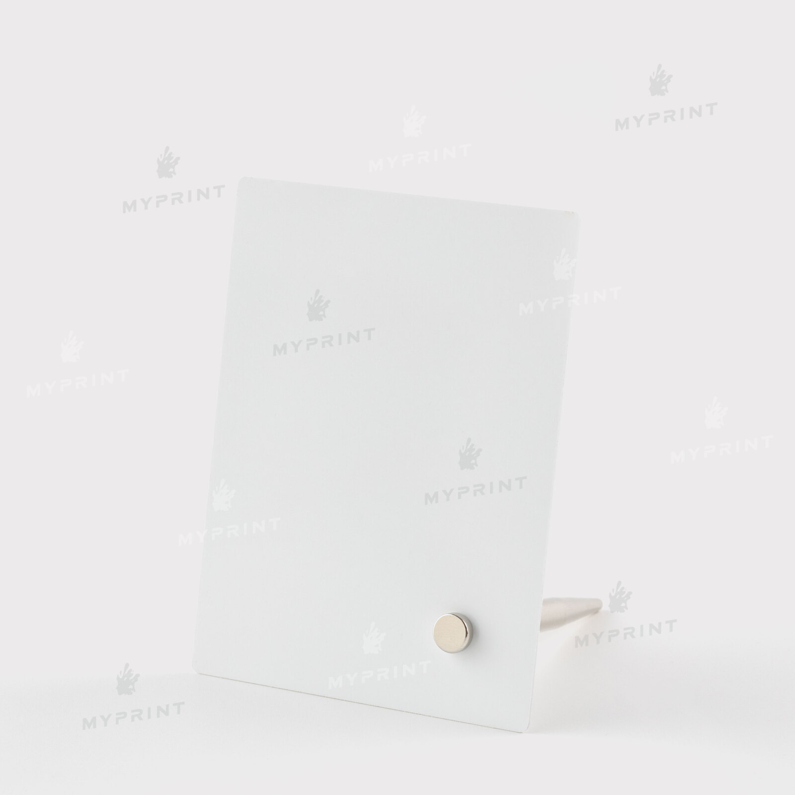 Description Photo frame for sublimation, metal with metal support, glossy white, 76.2*101.6 mm, thickness 0.65 mm (12220)