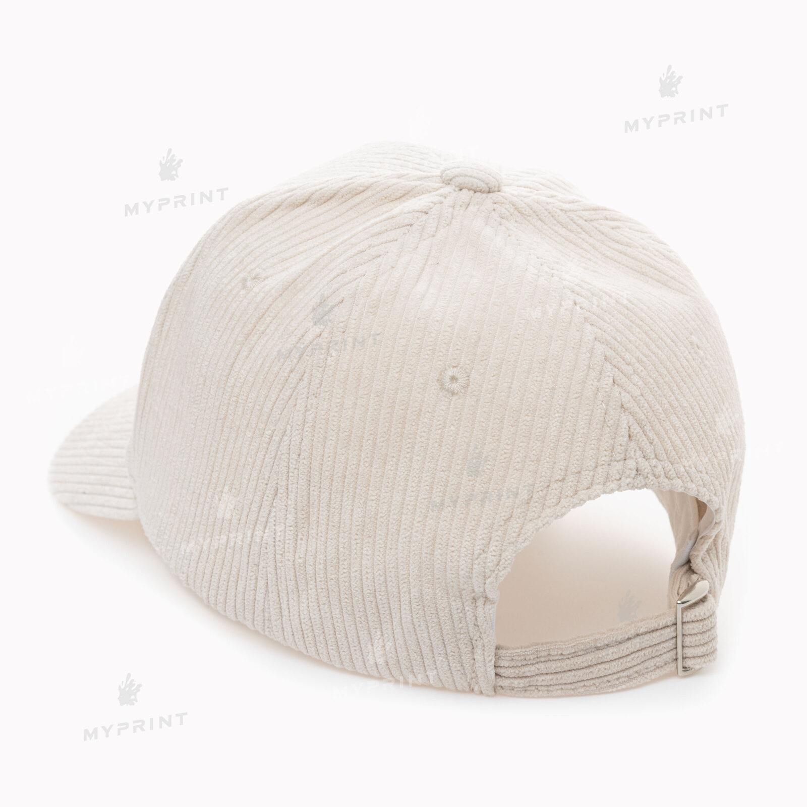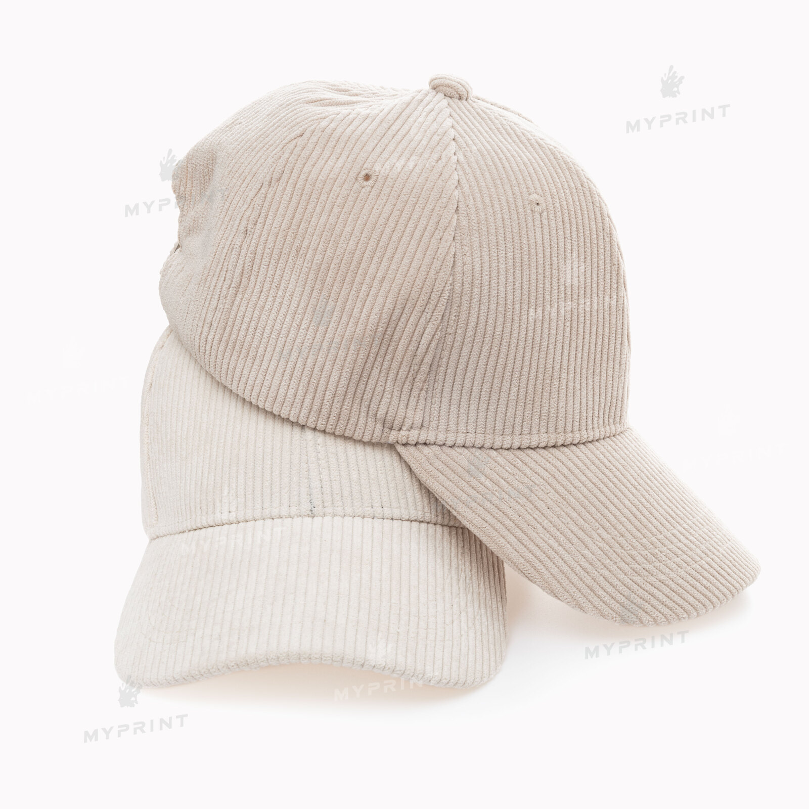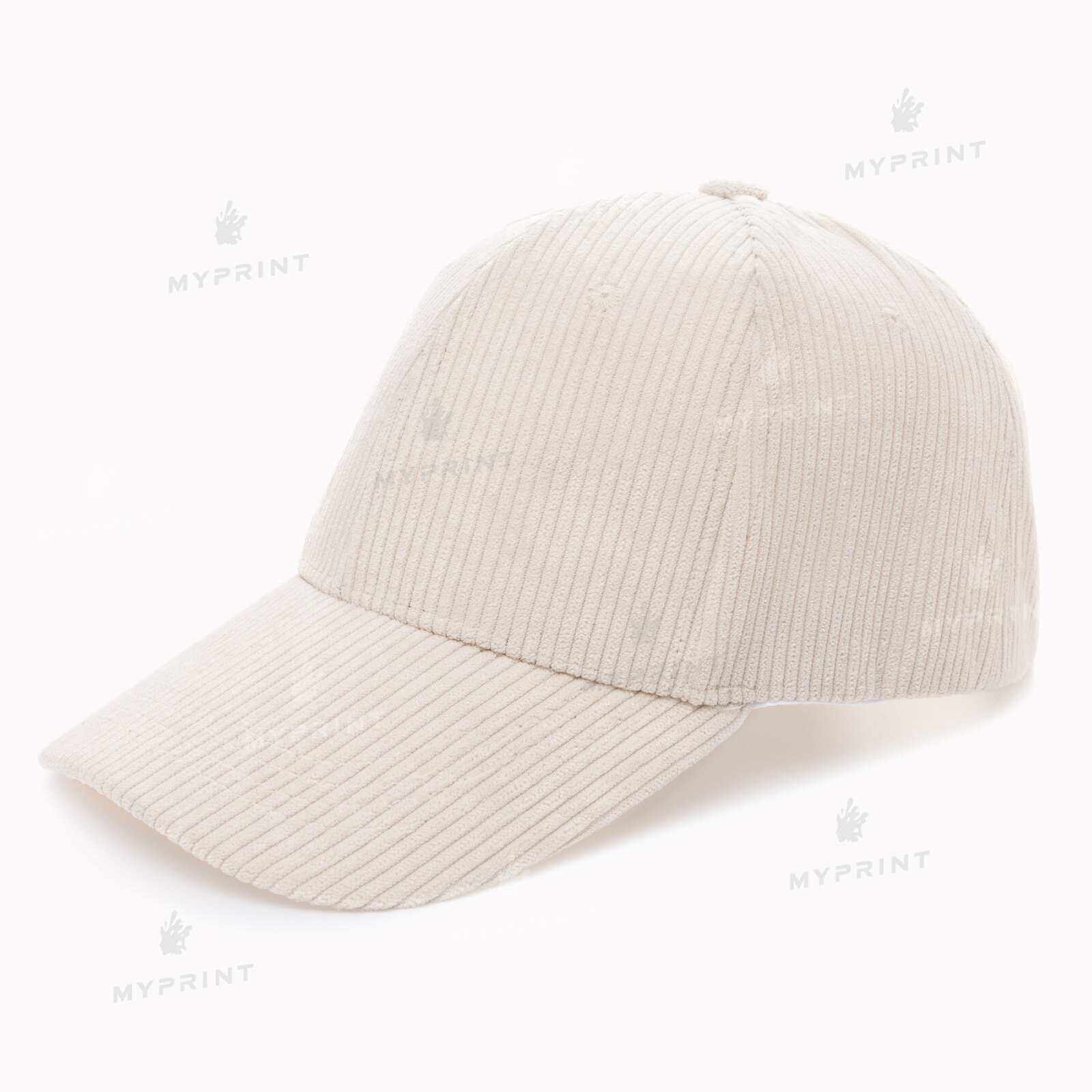 The process is complete. Corduroy white six-bladed cap is now not just a blank, but a finished product with a unique image or photo.