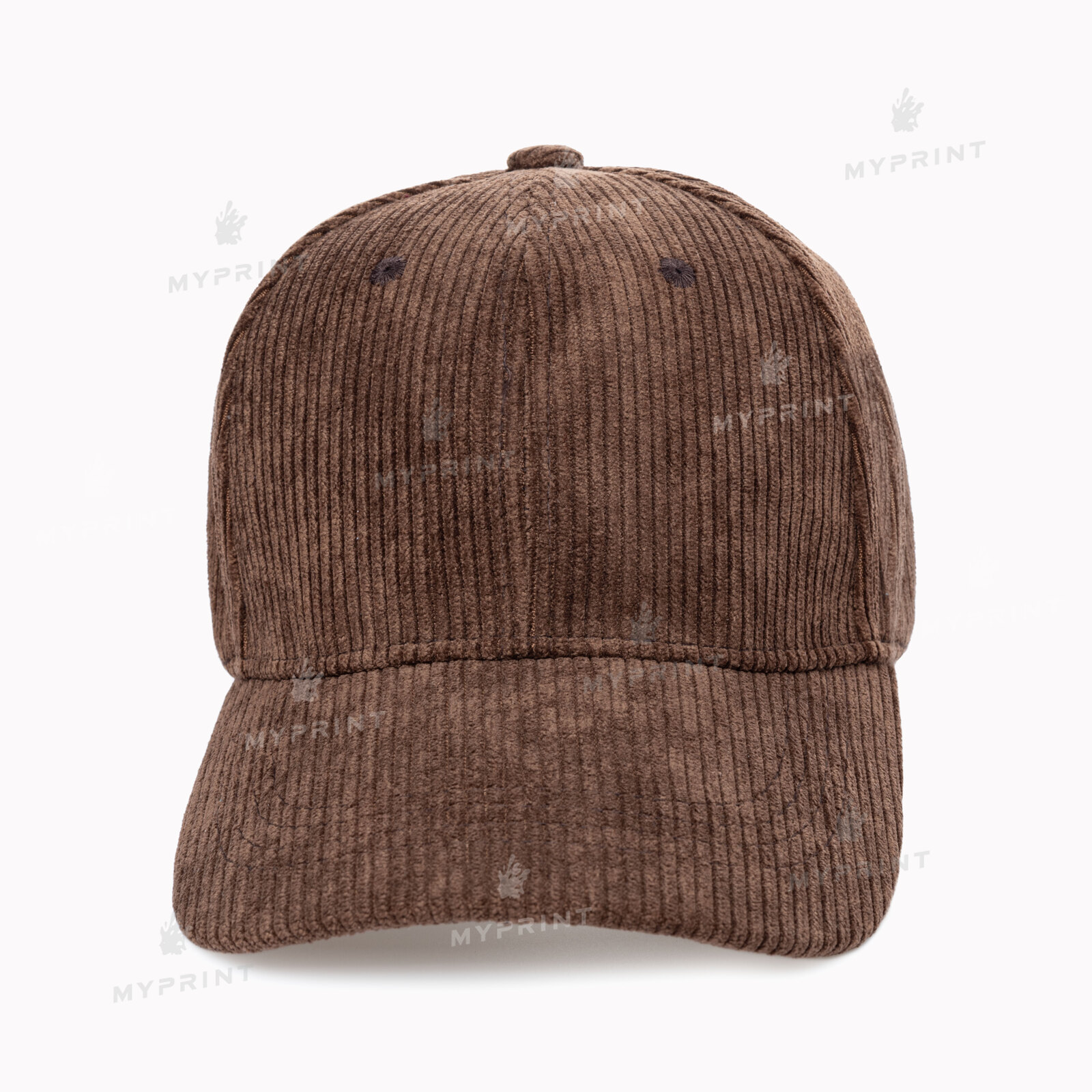 You can apply the image on Corduroy brown six-bladed cap using the DTF printing method and thermal transfer.