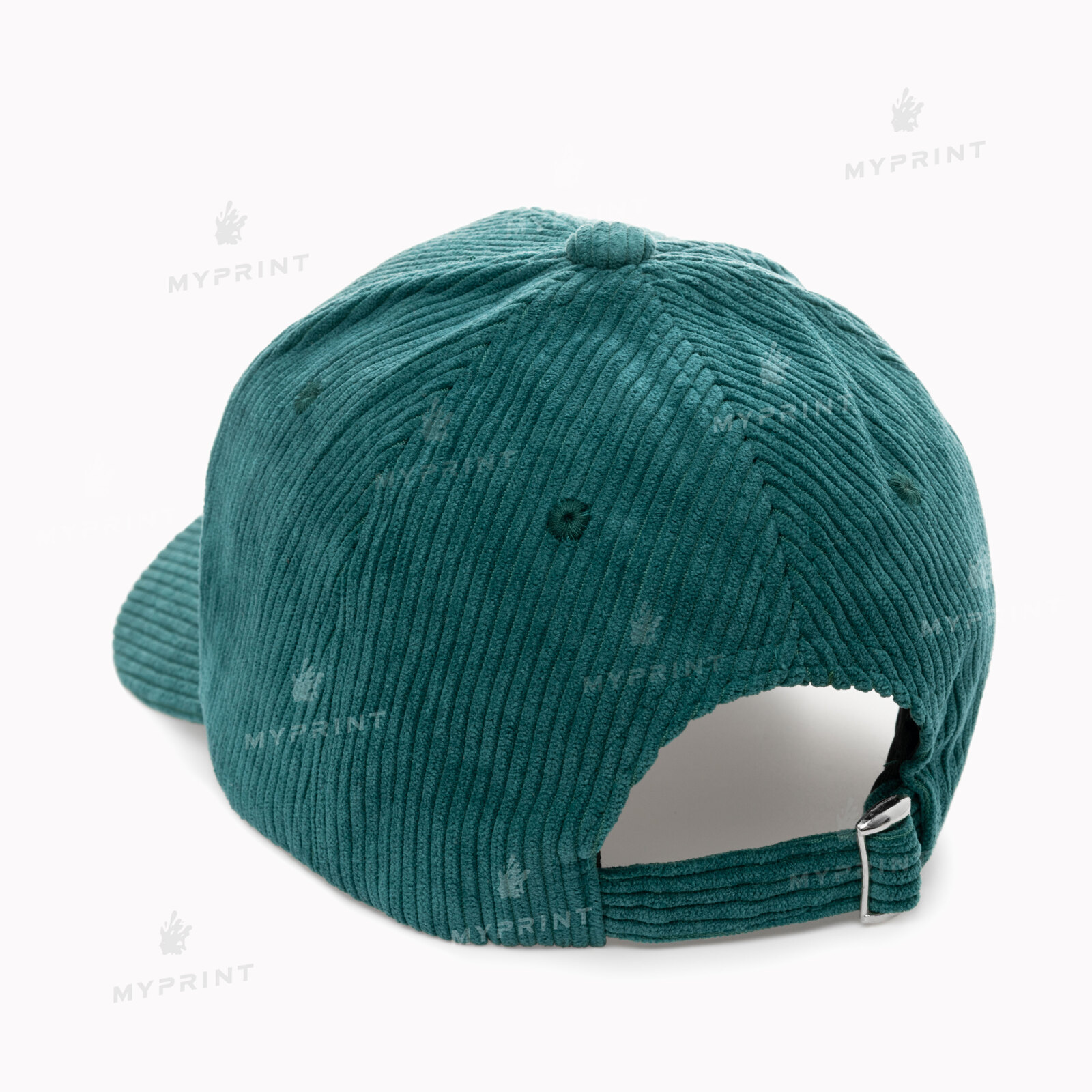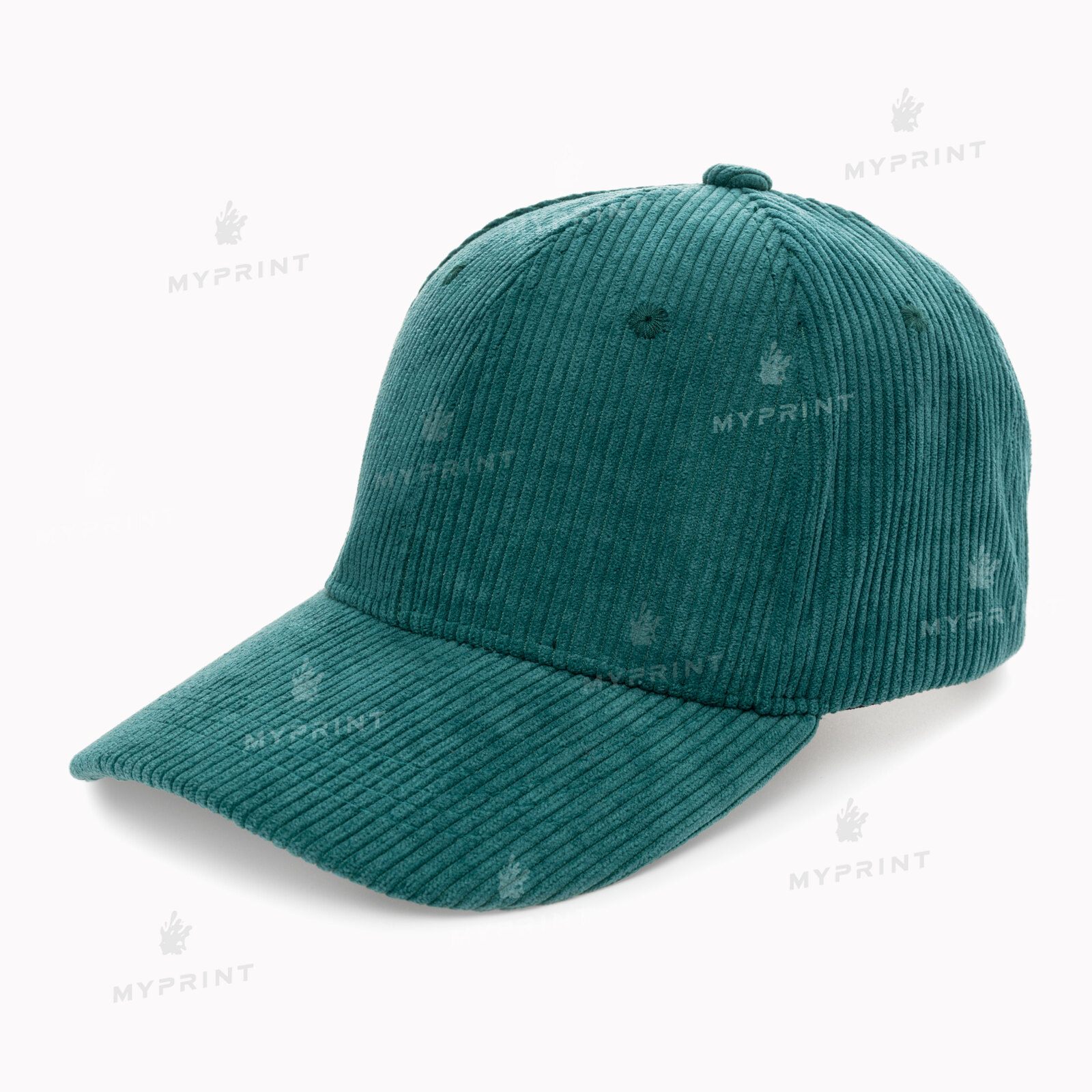 You can apply the image on Corduroy green six-bladed cap using the DTF printing method and thermal transfer.