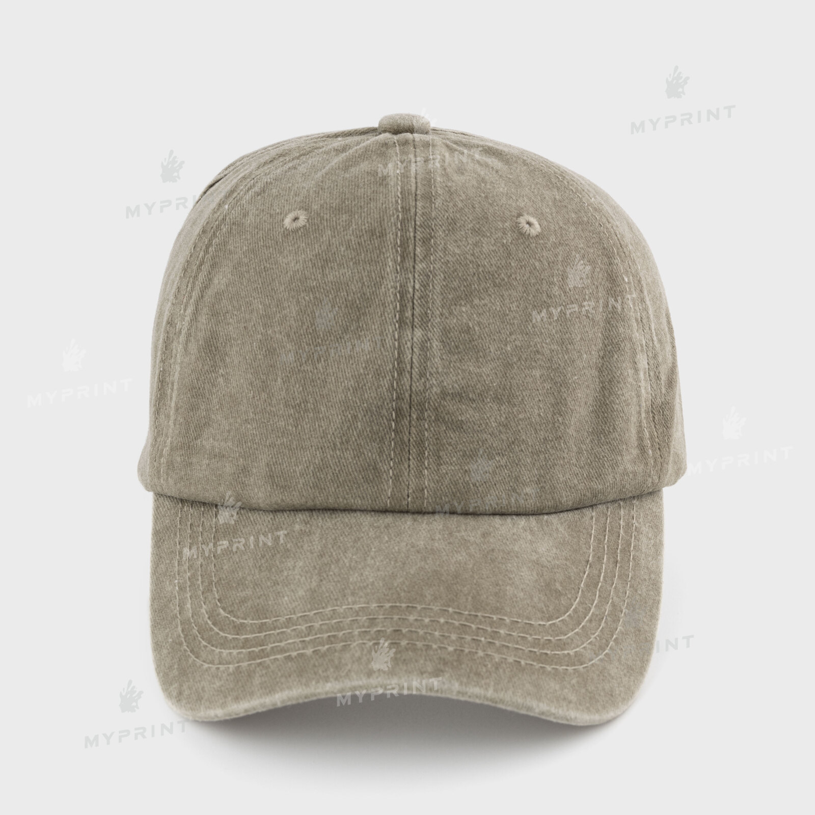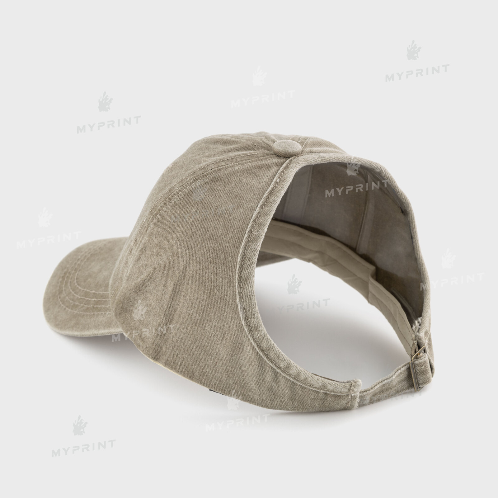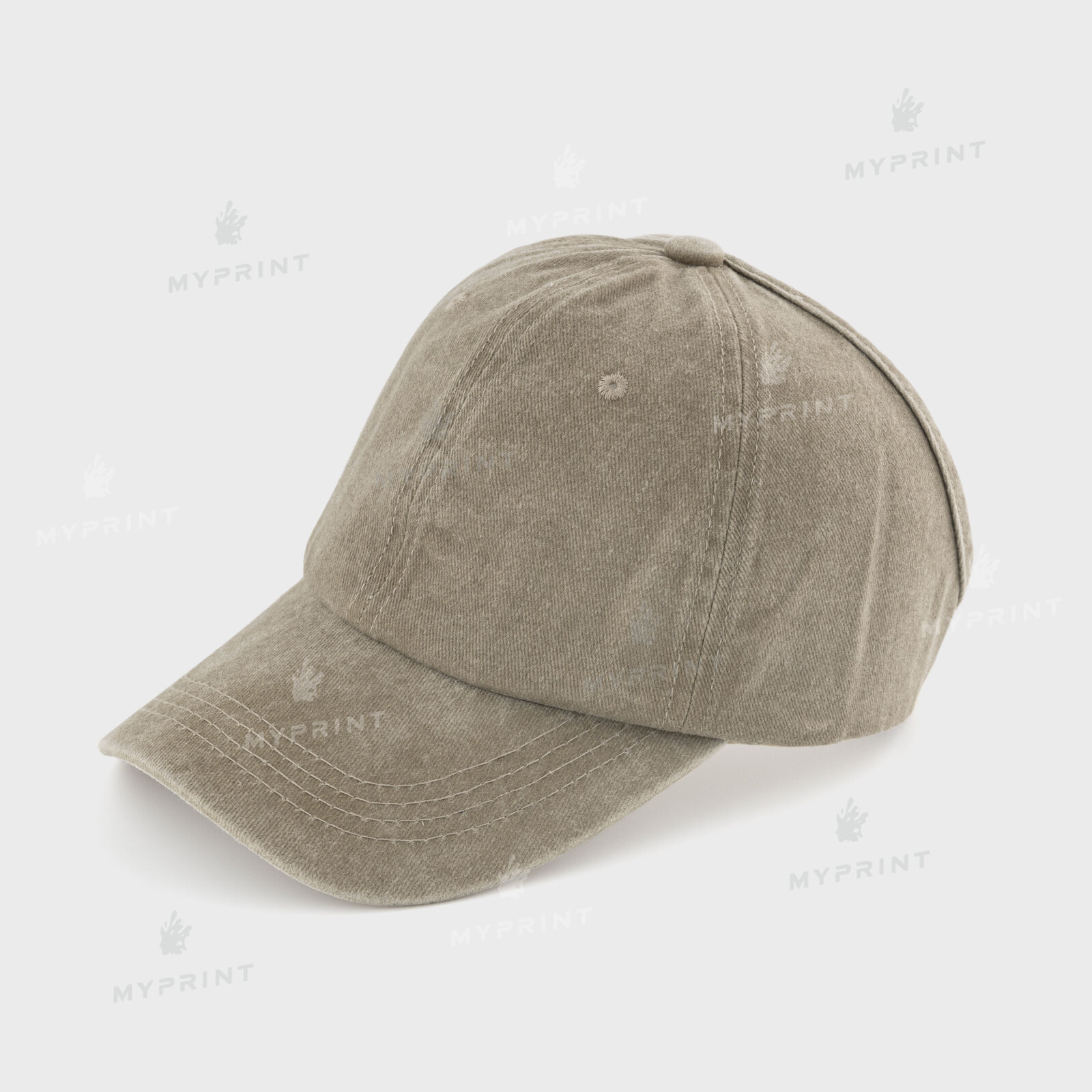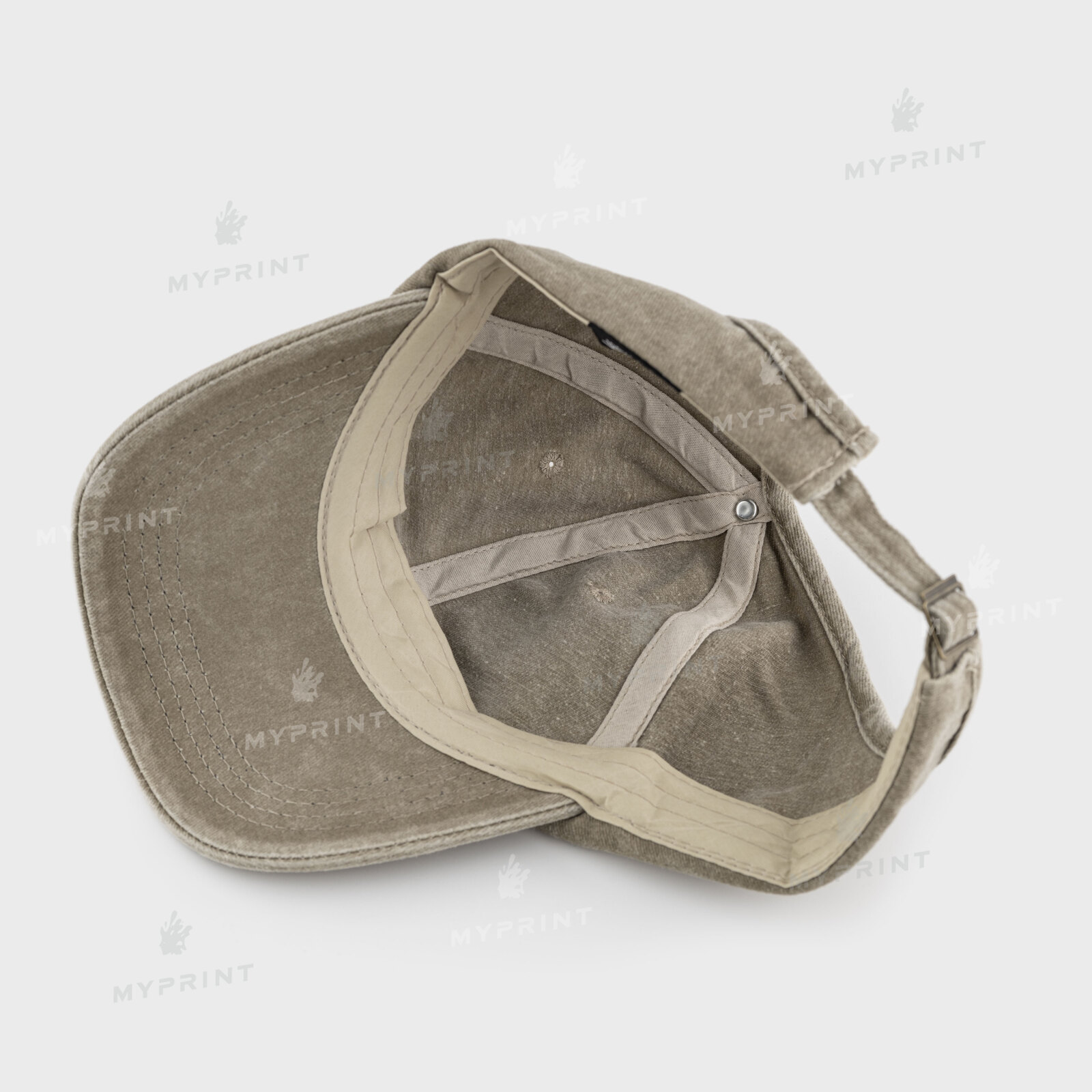 You can apply the image on Six-blade cap cotton Vintage with hair opening shabby beige using the DTF printing method and thermal transfer.