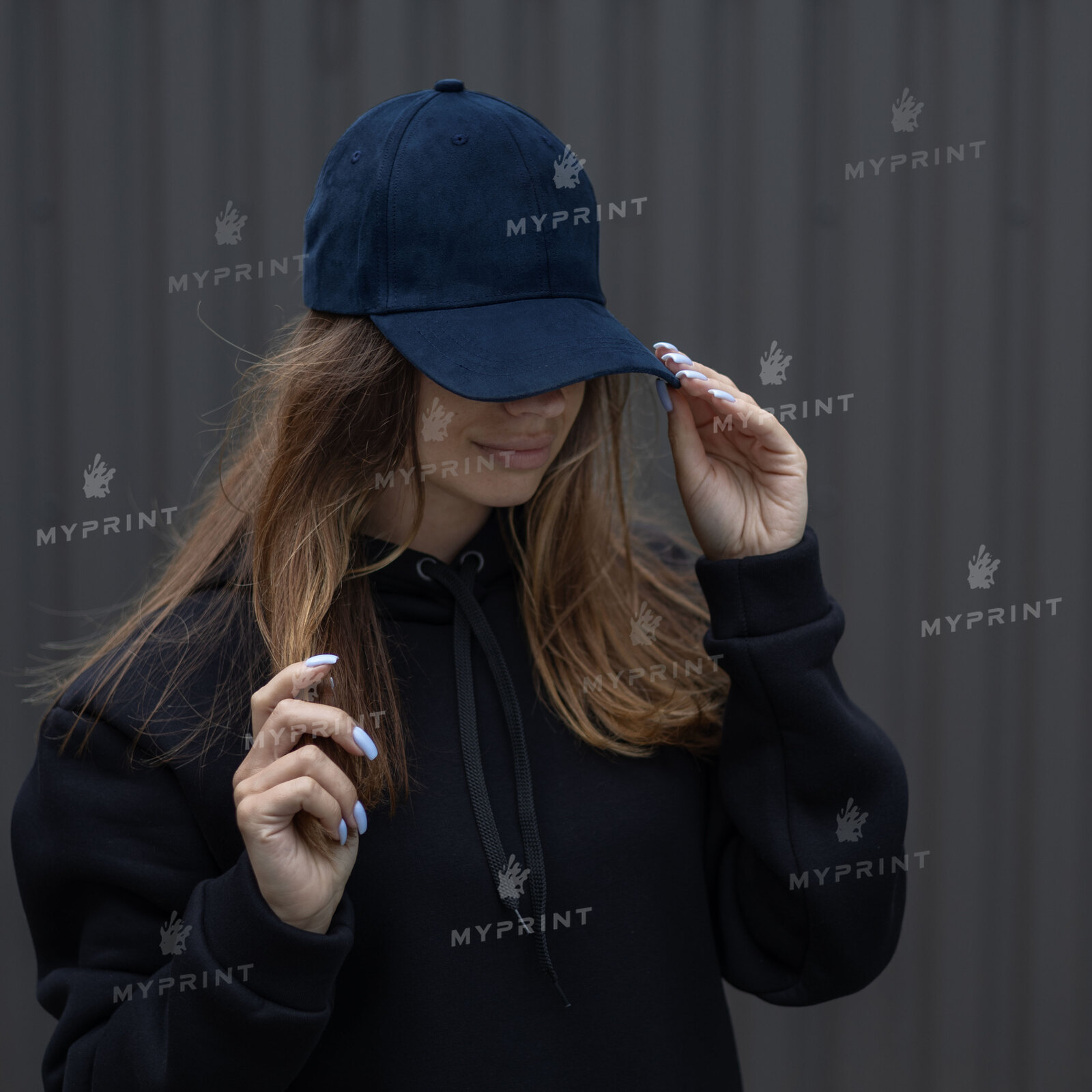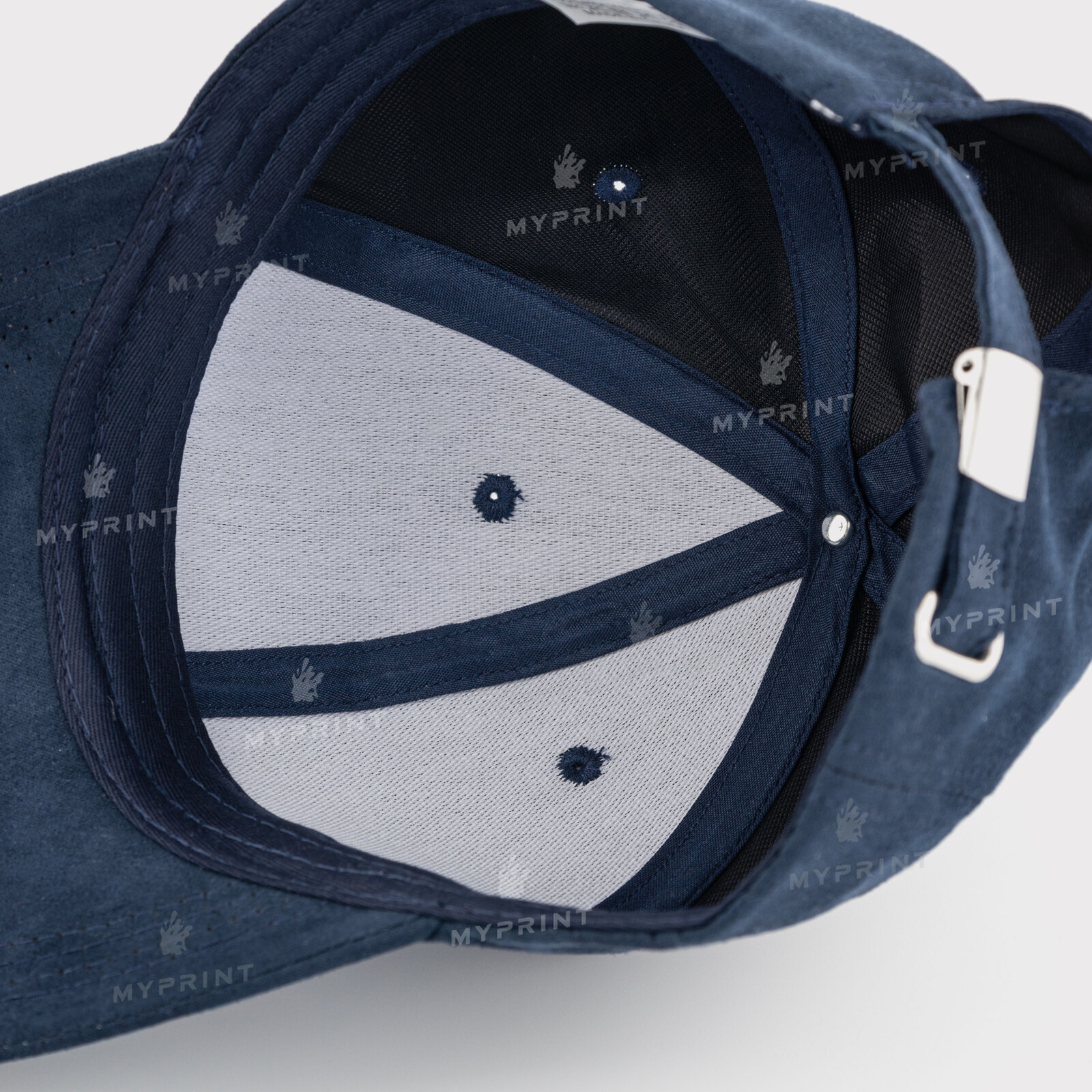 The process is complete. Six-blade cap suede blue is now not just a blank, but a finished product with a unique image or photo.