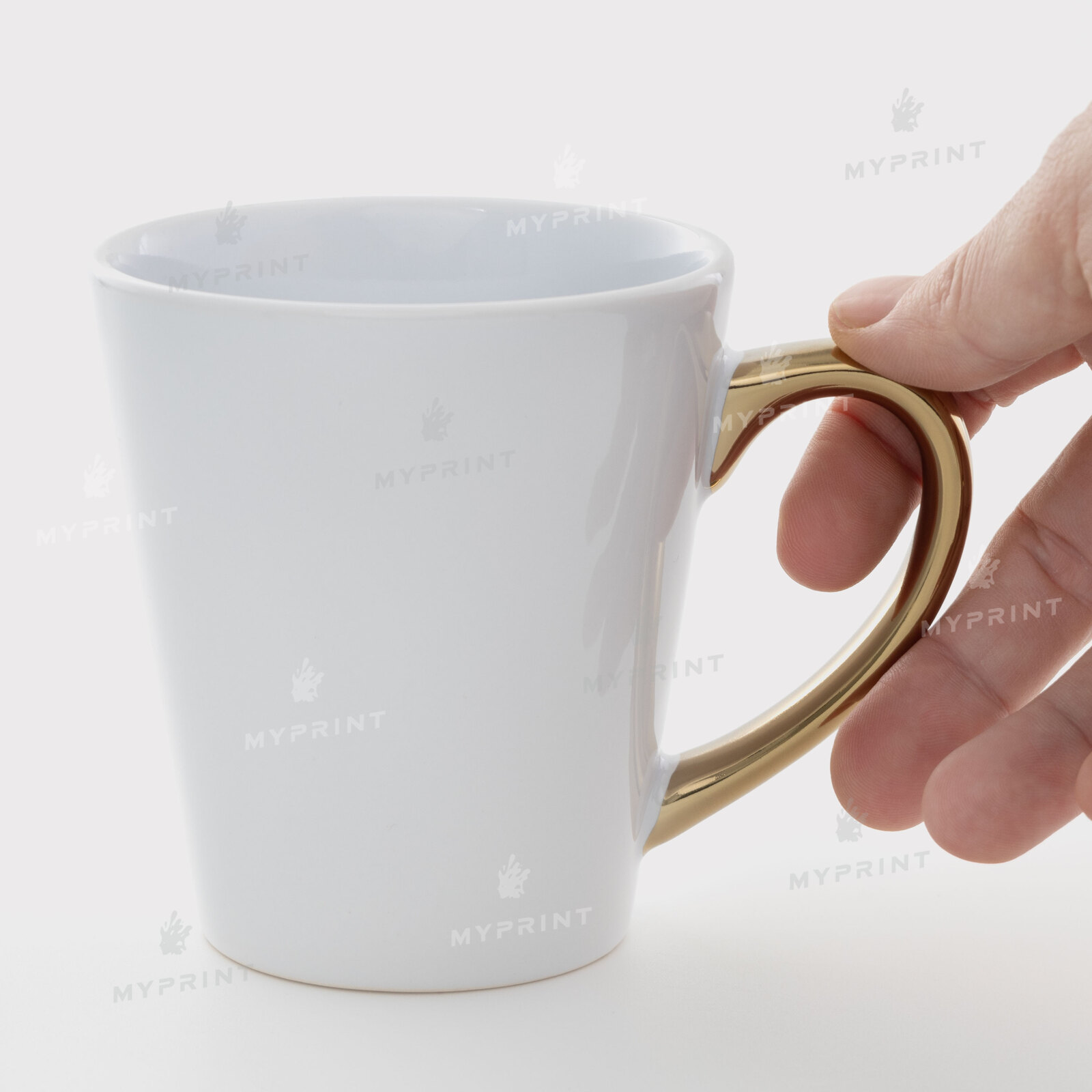 The process is complete. White Sublimation Mug with Gold Rim and Handle 12 Oz (350 ml) is now not just a blank, but a finished product with a unique image or photo.