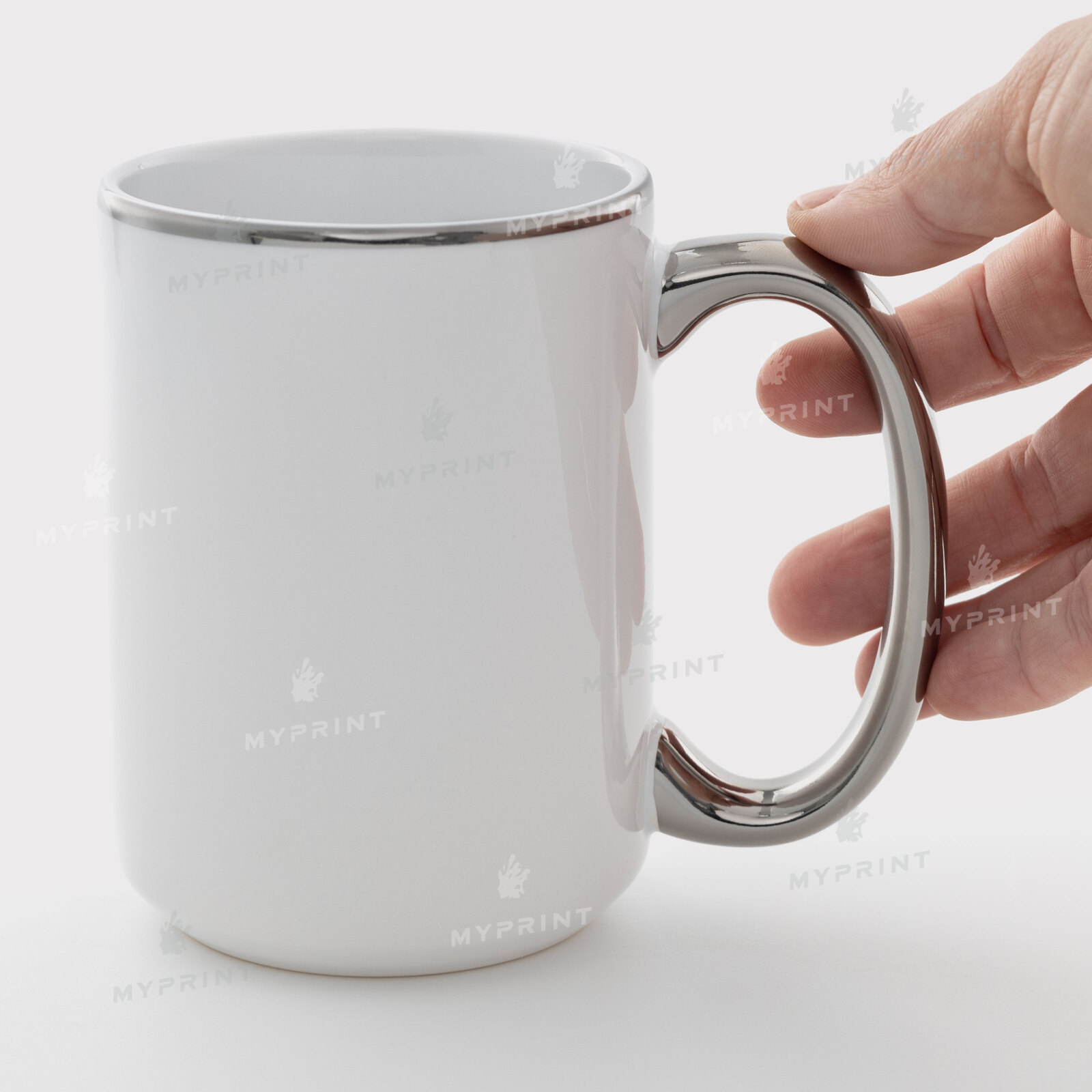 - Sublimation Mug White with Silver Rim and Handle 15 Oz (425 ml)