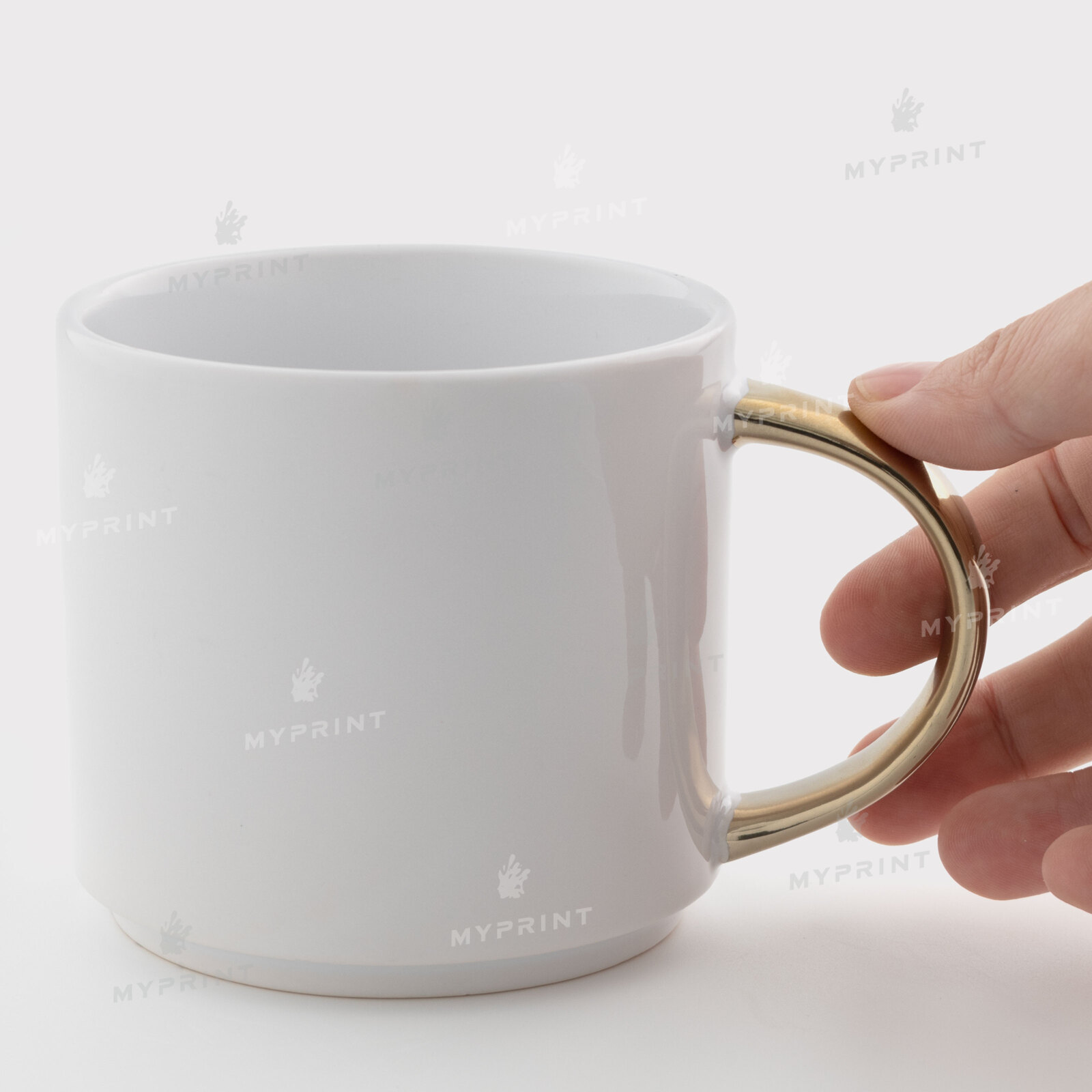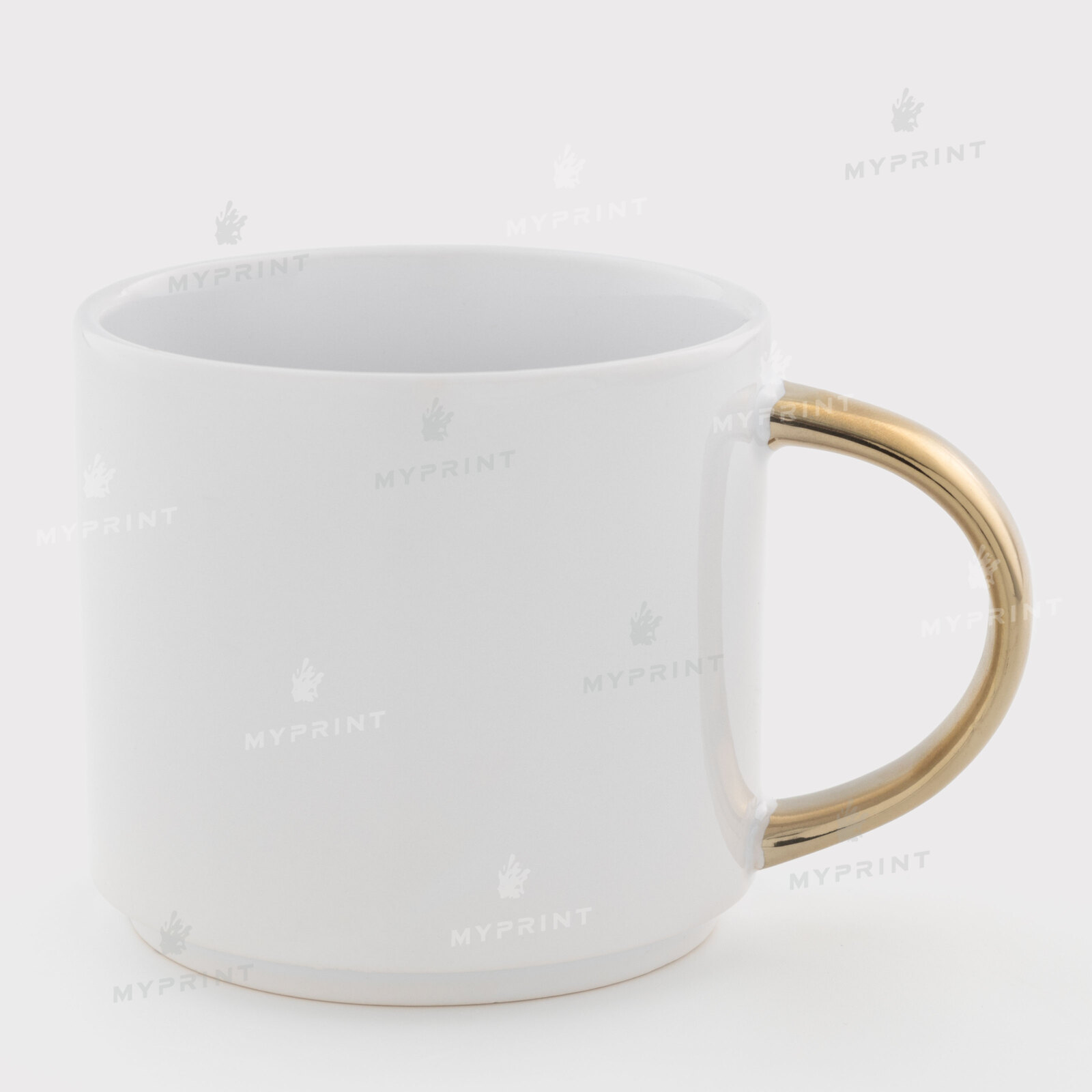 - Sublimation mug white with gold handle folding one on top of another (450 ml)