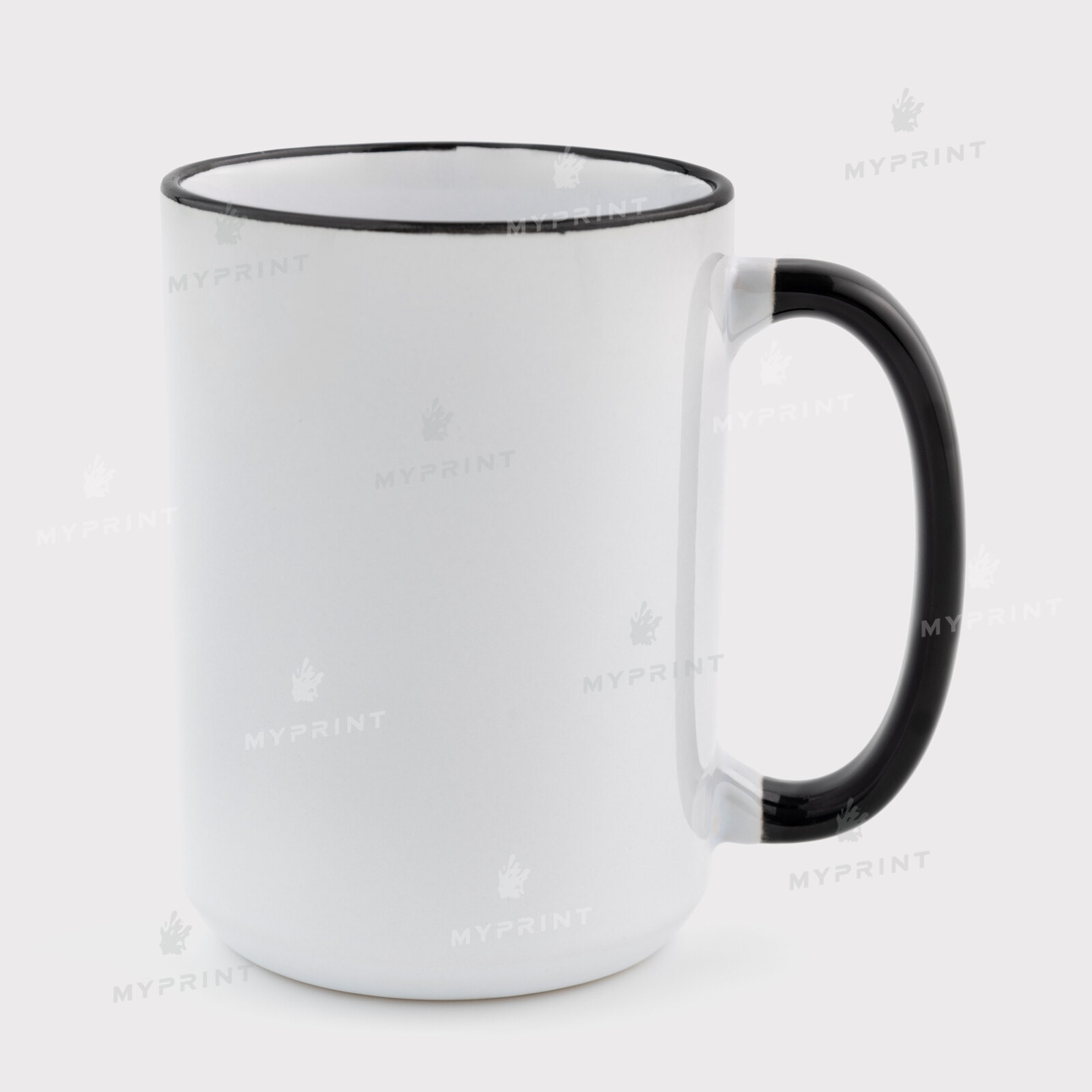 Description Sublimation mug with colored rim and colored handle black 15 Oz (425 ml) (12675)