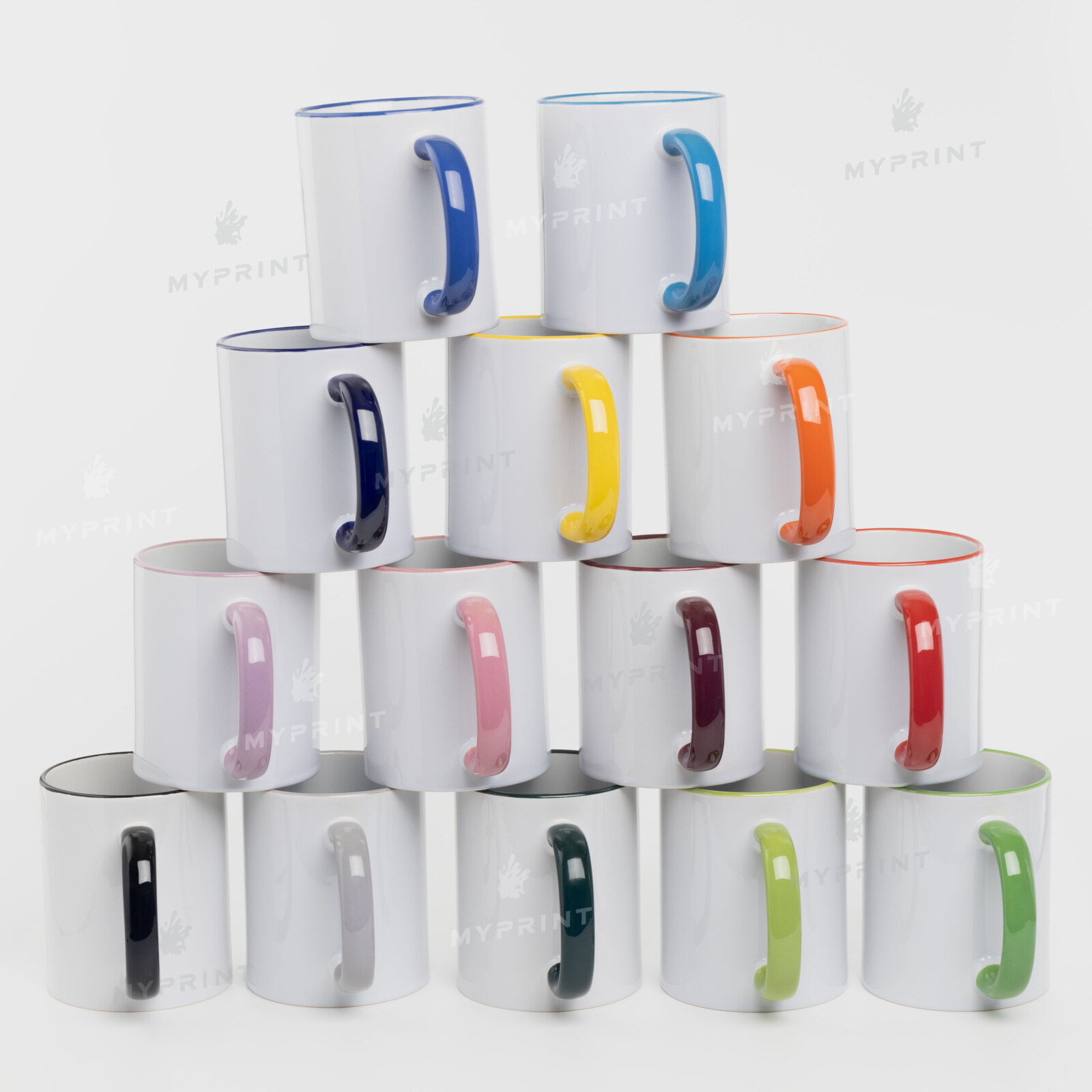 - Sublimation Mug with Colored Rim and Colored Handle Orange 11 Oz (330ml)