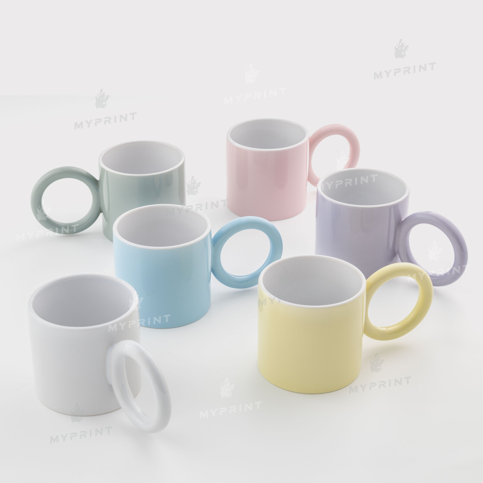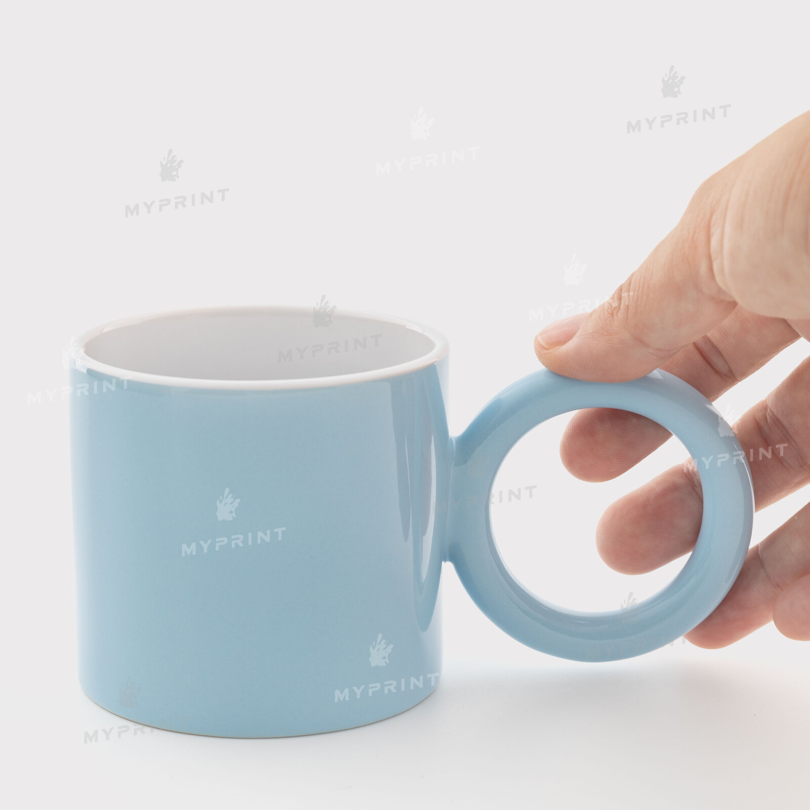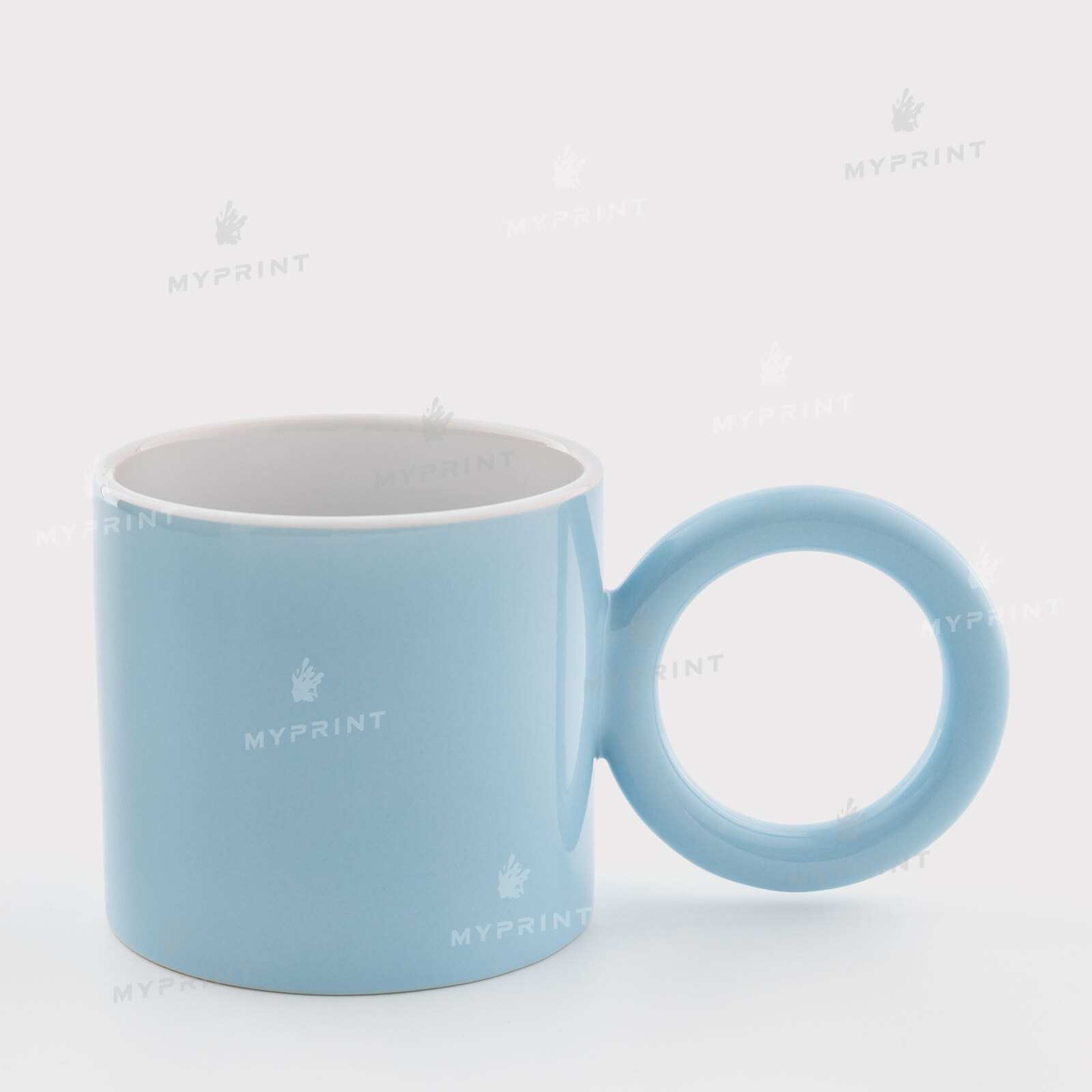 - Sublimation cup, colored, with round handle, light blue (250 ml)