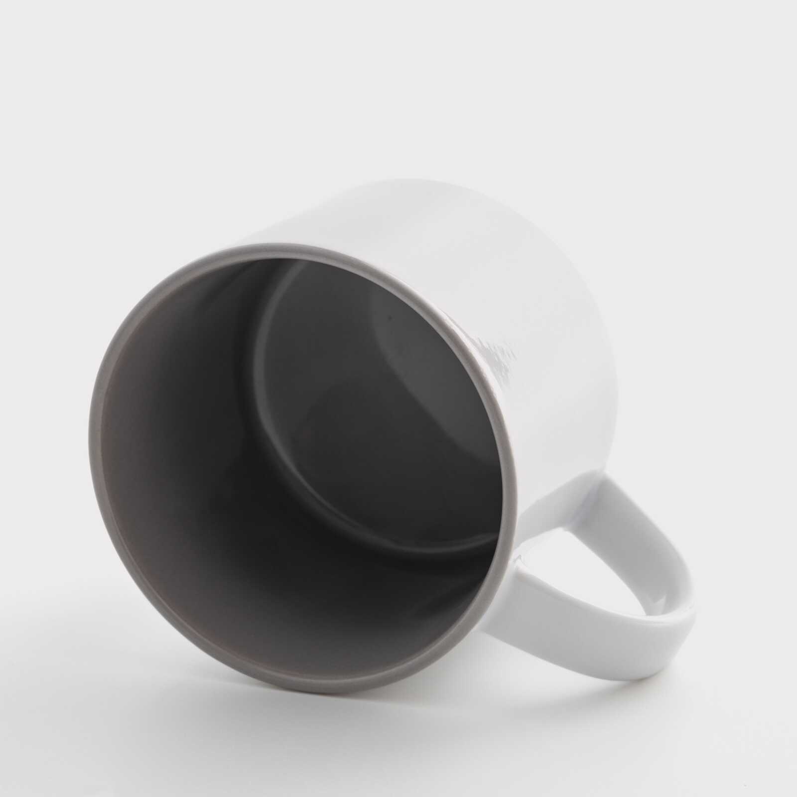 The process is complete. Sublimation cup, colored inside, stackable, gray (450 ml) is now not just a blank, but a finished product with a unique image or photo.