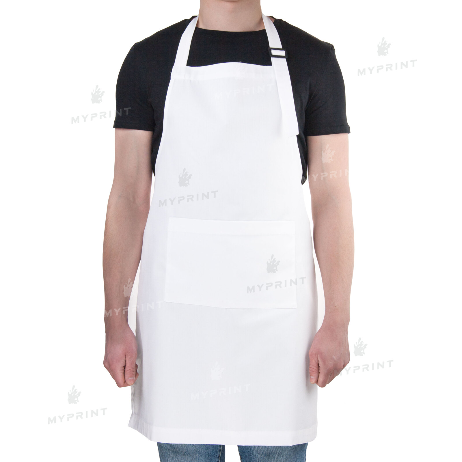 Description Apron for sublimation twill with adjustable strap and pocket extended white (9084)