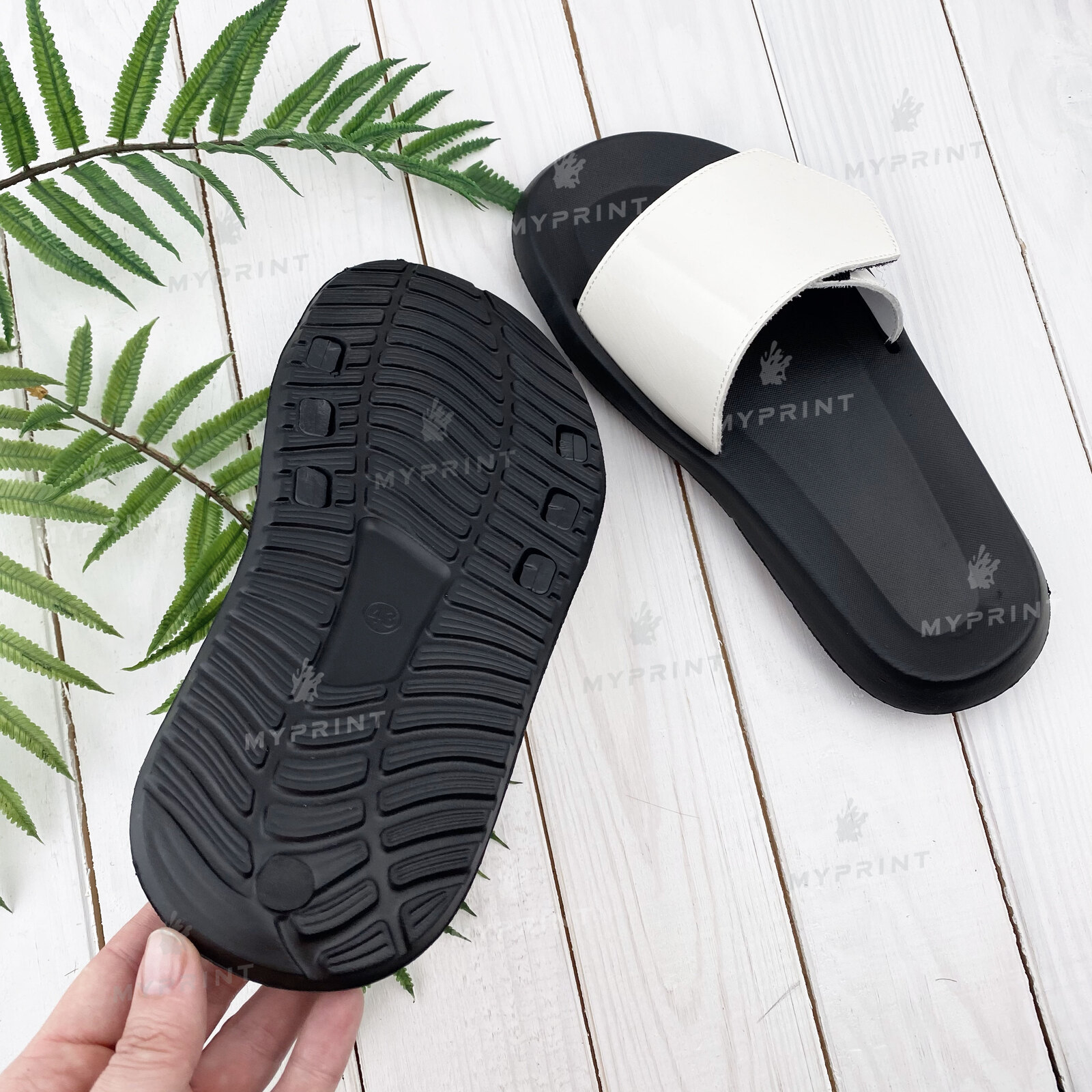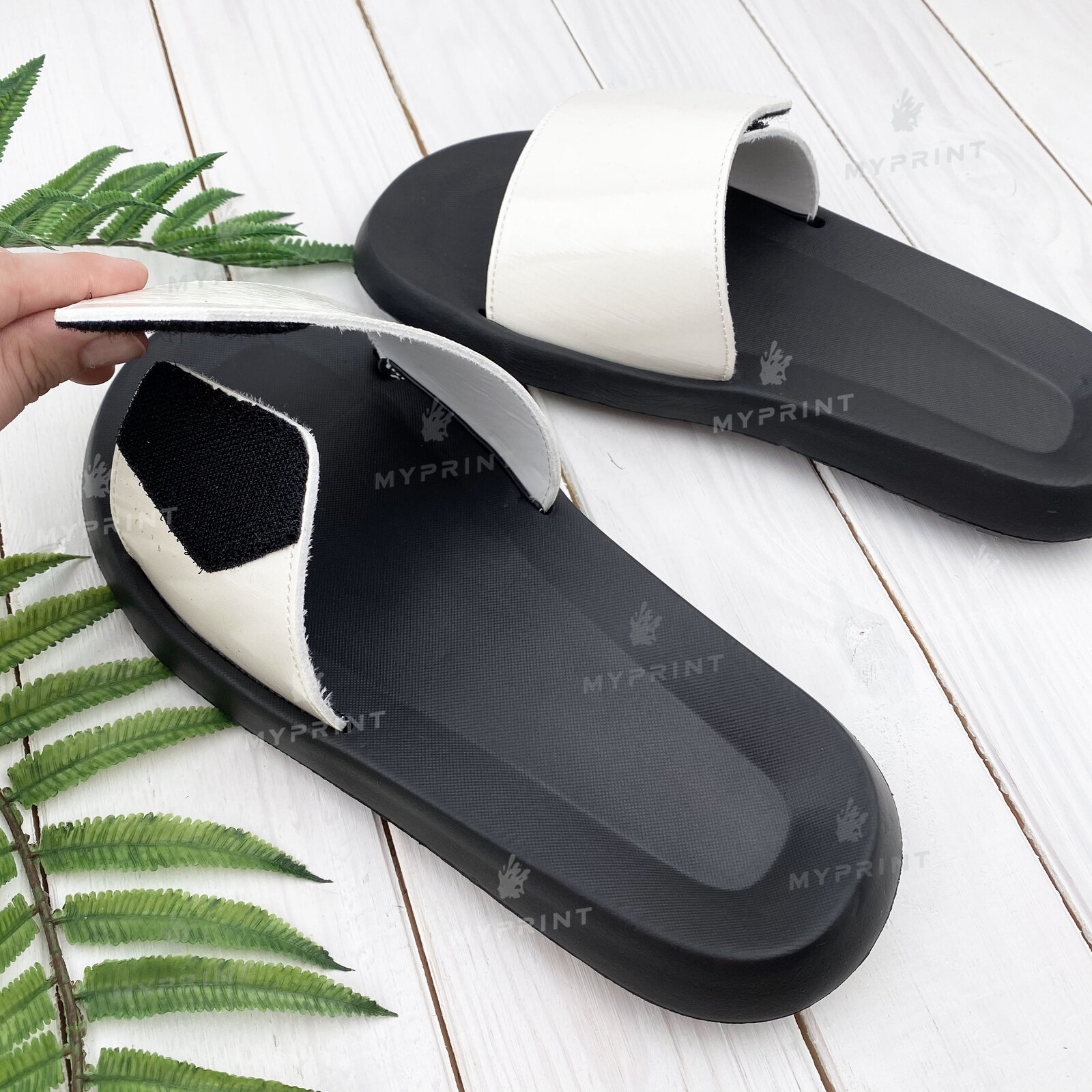 Description Flip-flops for sublimation on Velcro with a black sole 36 (22 cm) (7399)