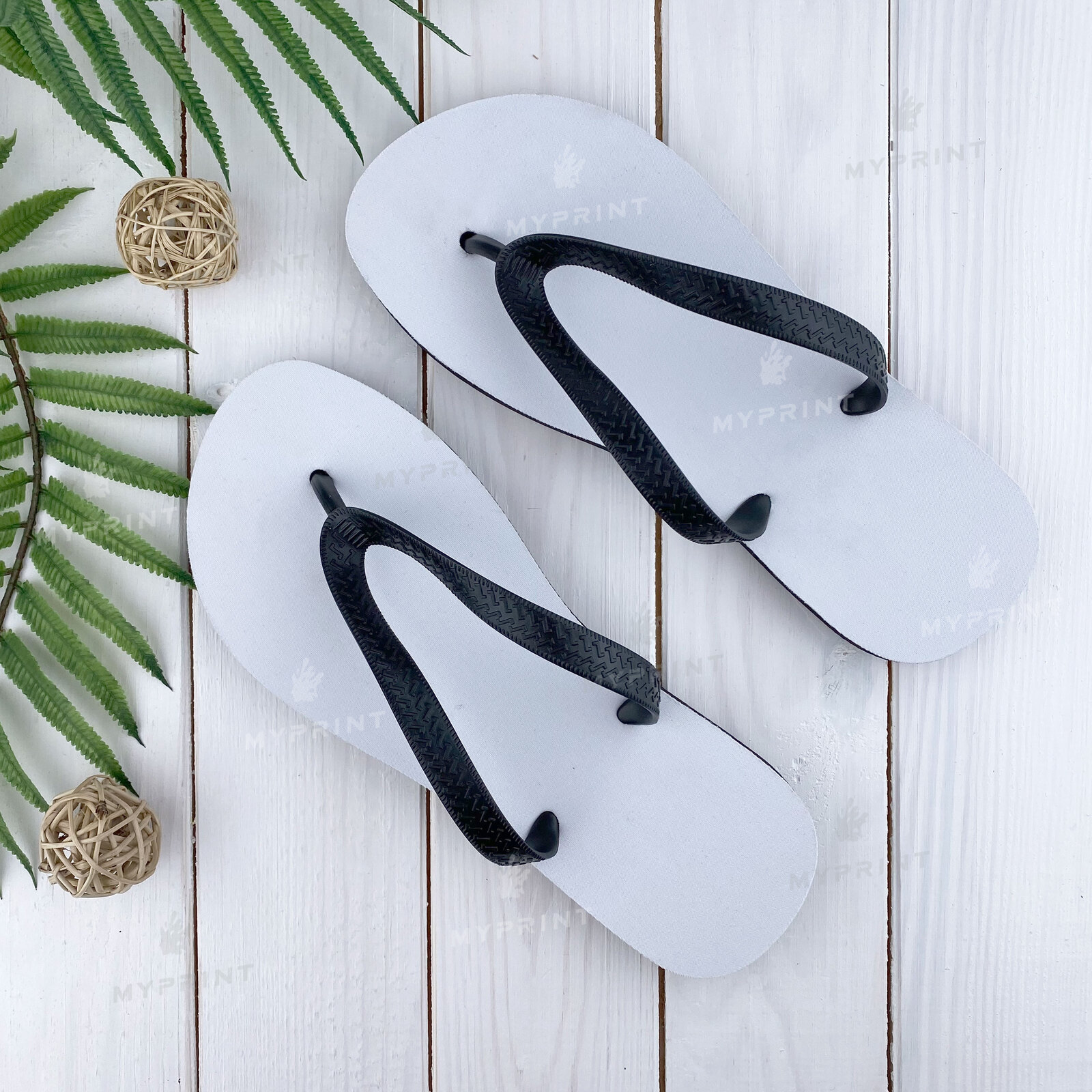The process is complete. Slippers for sublimation with black sole 40-42, M (27 cm) is now not just a blank, but a finished product with a unique image or photo.