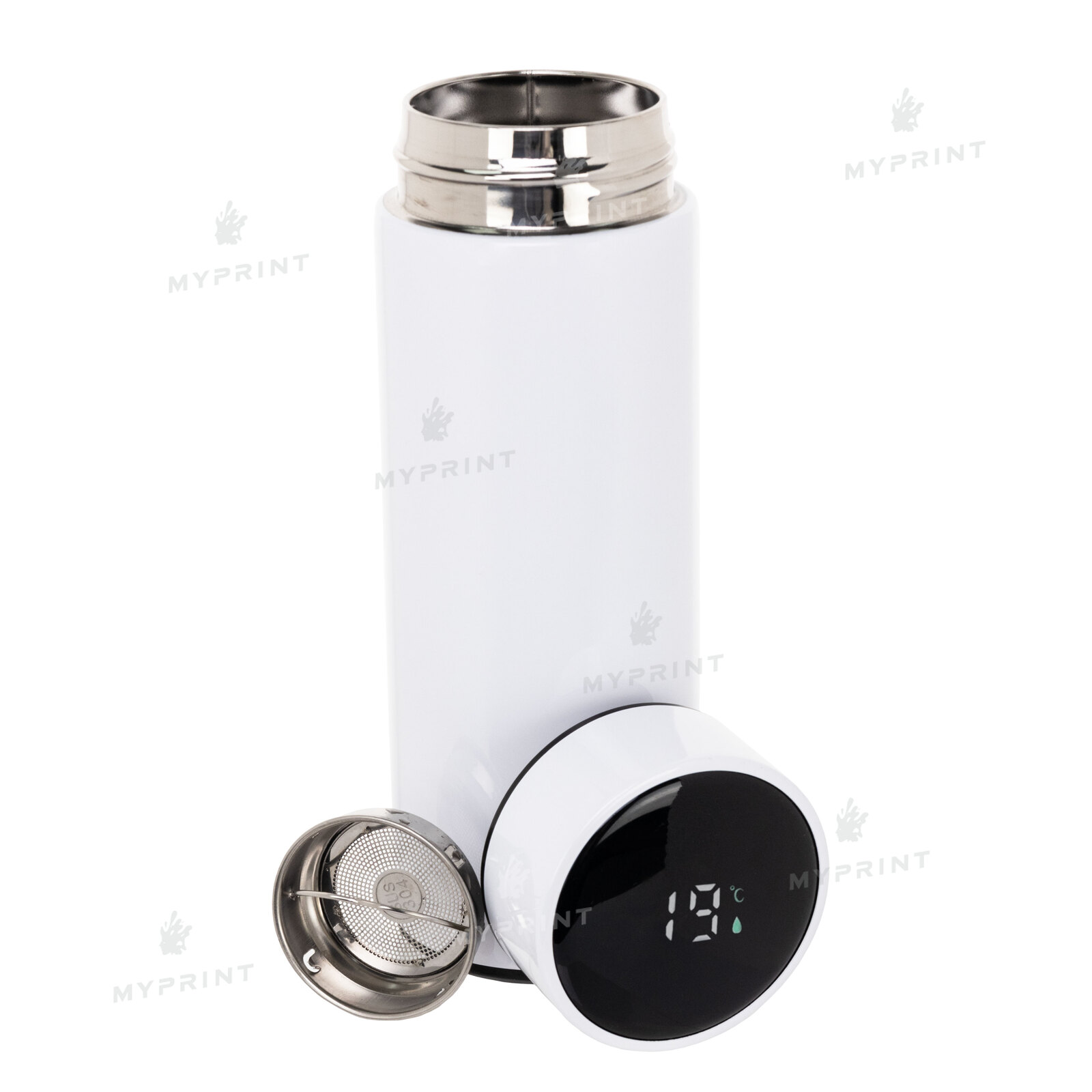 - Thermos for sublimation metal (steel 304) with a temperature display and a white filter mesh (350 ml)