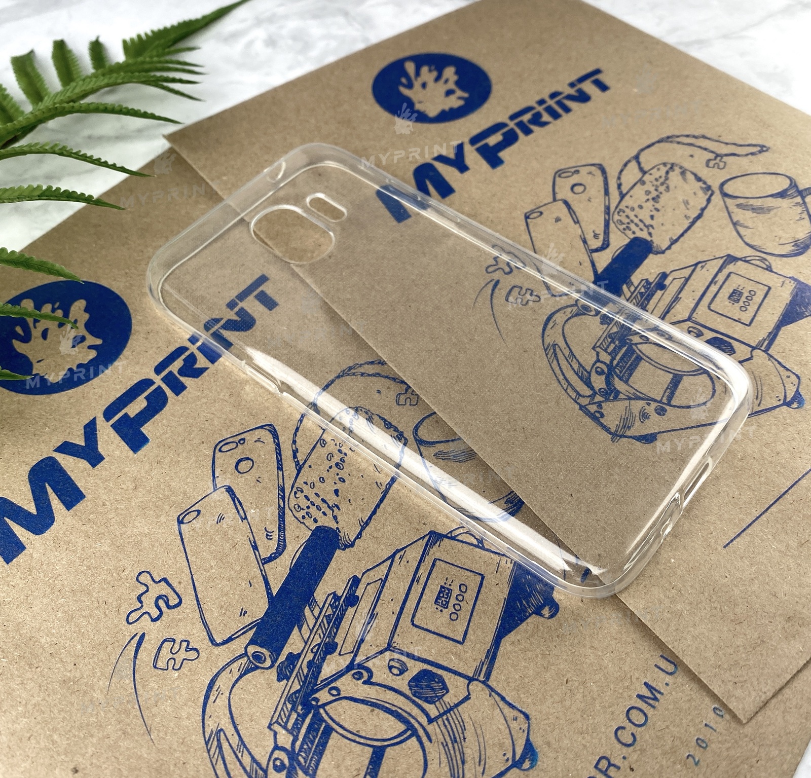 Чехол силиконовый для Samsung J2 2018 прозрачный отлично подходит для УФ печати.