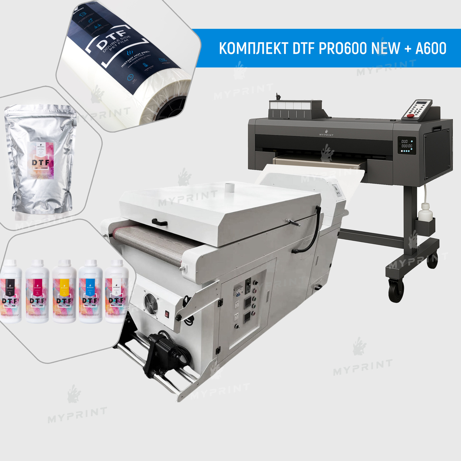 Комплект для DTF печати с принтером PRO600 NEW c 2 головами I1600, сушкой A600 и расходными материалами (12142)