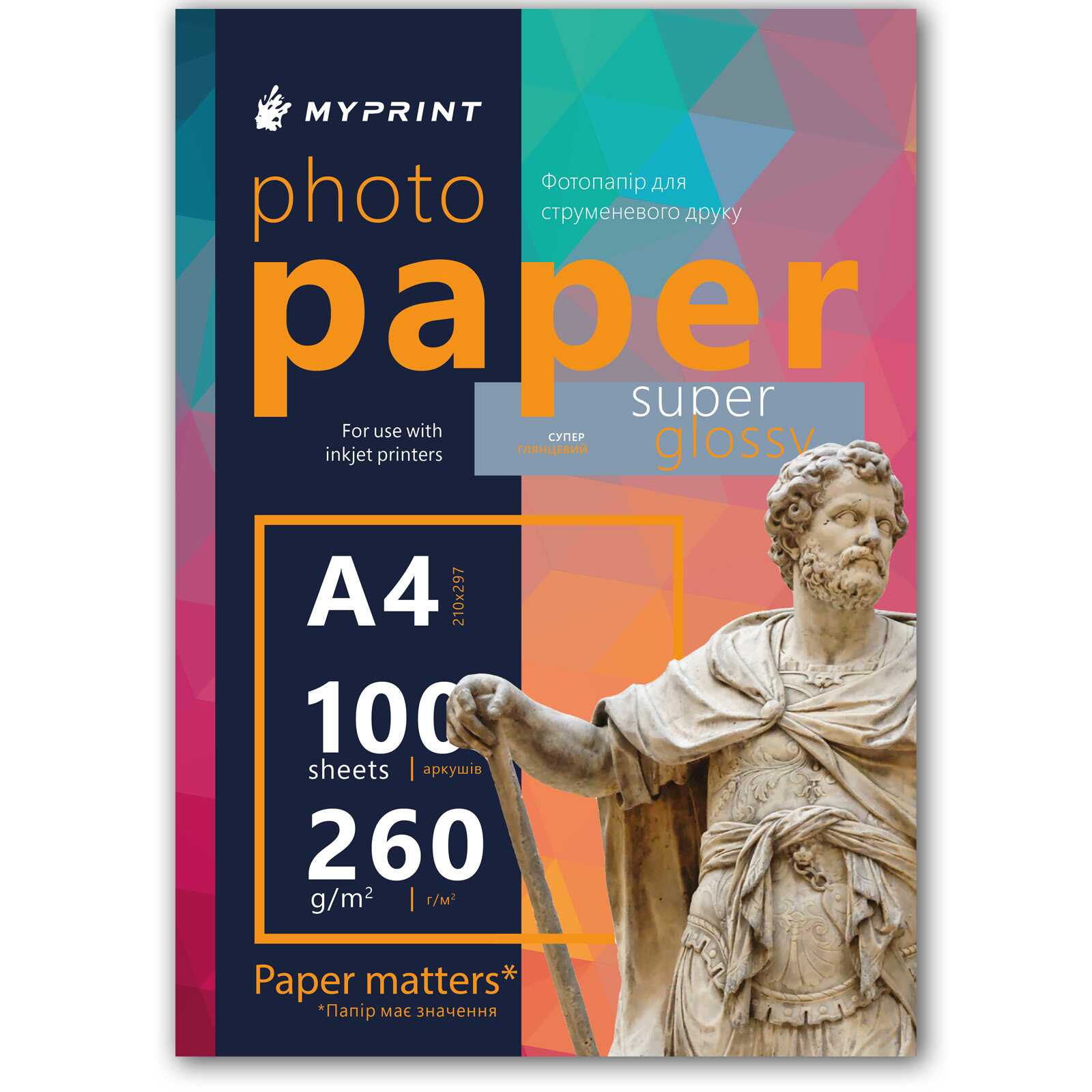 Фотобумага My Print суперглянцевая 260 г/м², A4, 100 листов - это качественная бумага разработанная специально для фотопечати на всех типах струйных принтеров: Epson, Canon, HP и других.