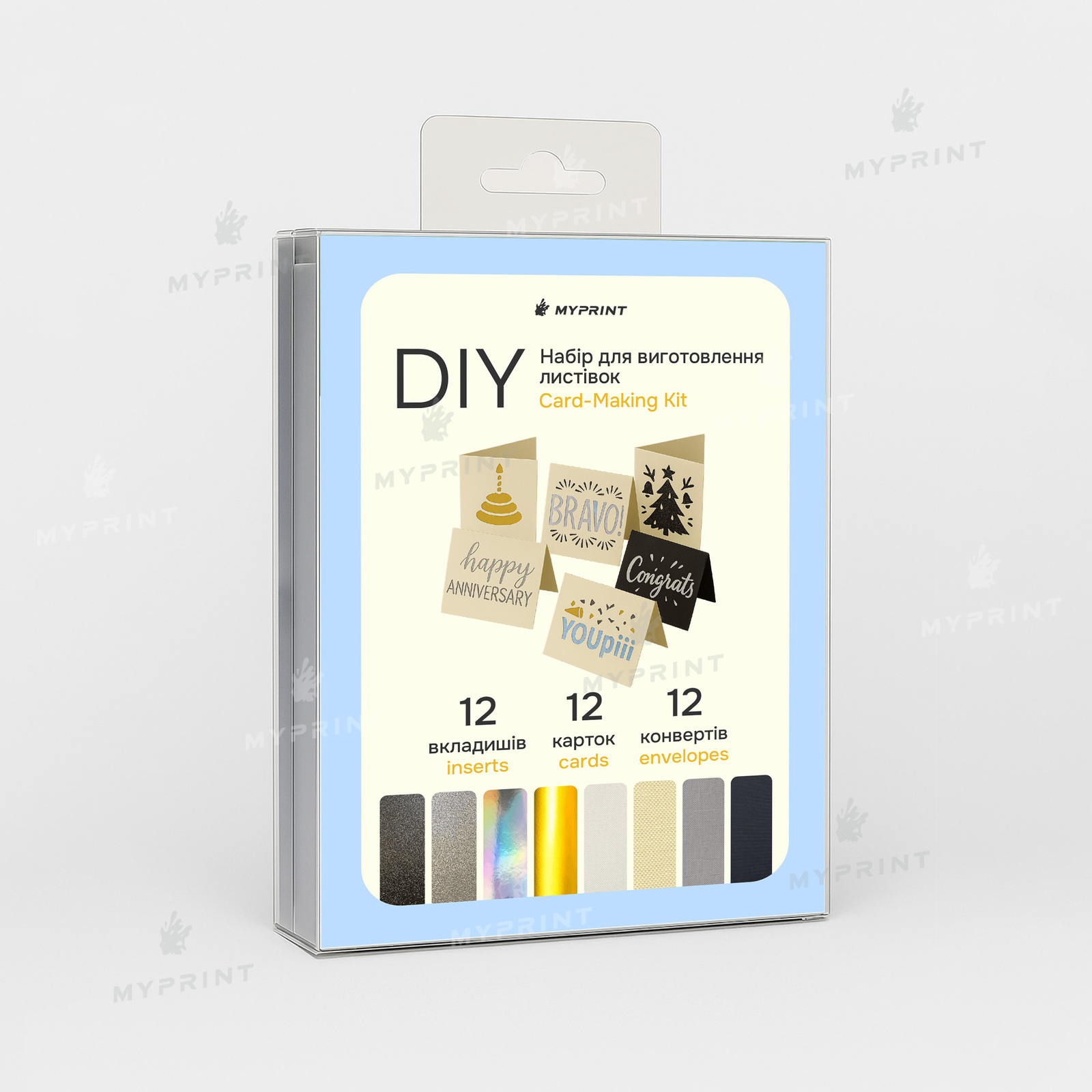Включает 12 открыток, 12 контрастных вставок и 12 конвертов. Всё готово для реализации ваших идей!
