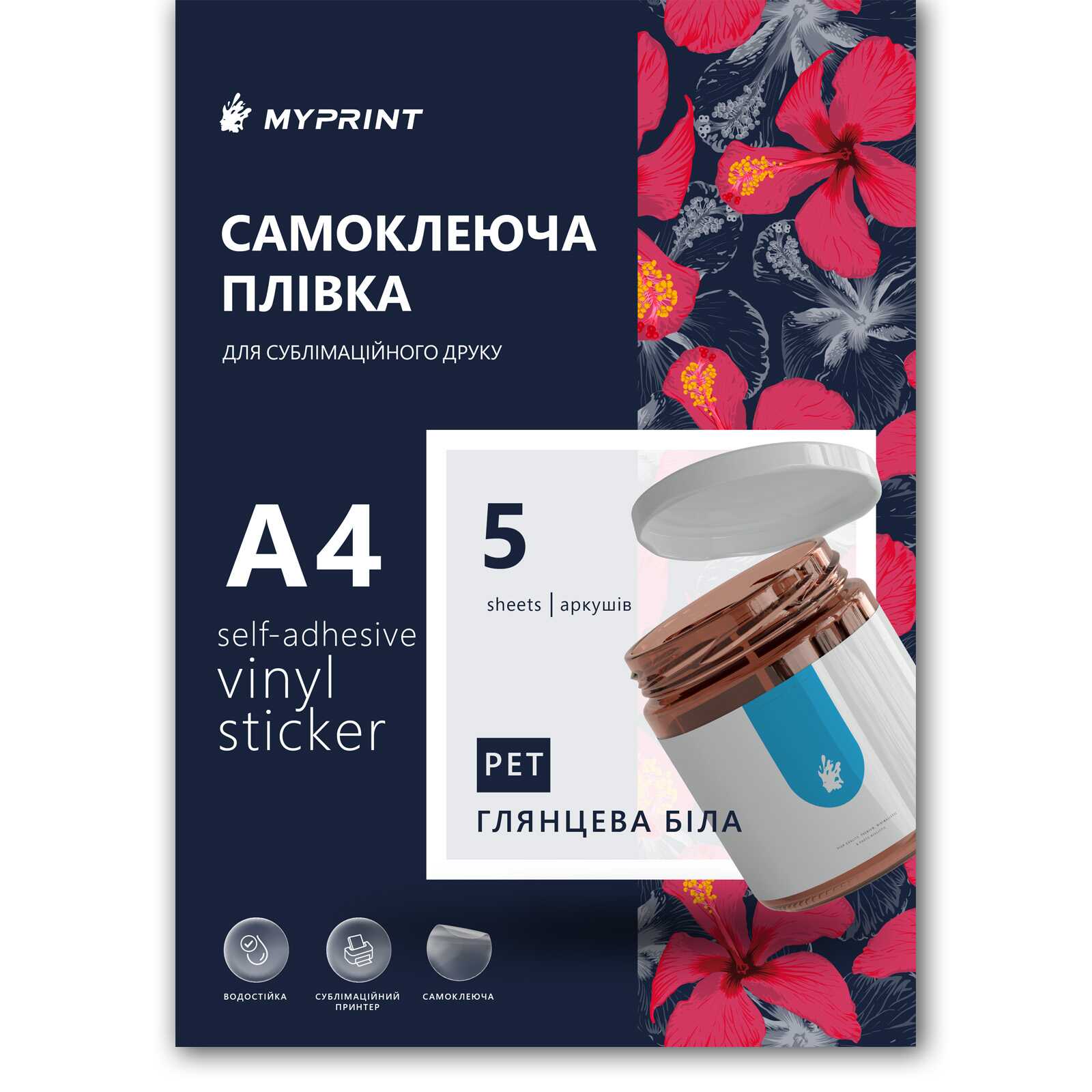 Самоклеящаяся пленка My Print PET для сублимационной печати водостойкая, А4, 5 листов, белая (9662)