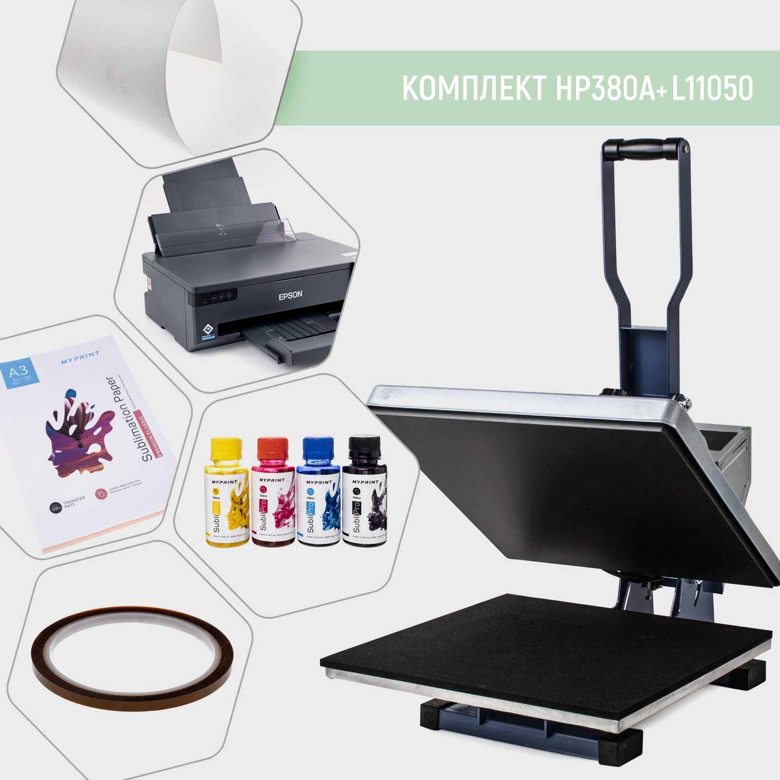 Комплект оборудования для сублимации с планшетным термопрессом HP380A + L11050 (7927)