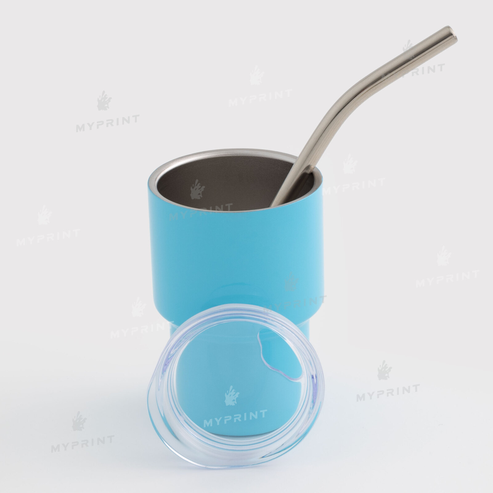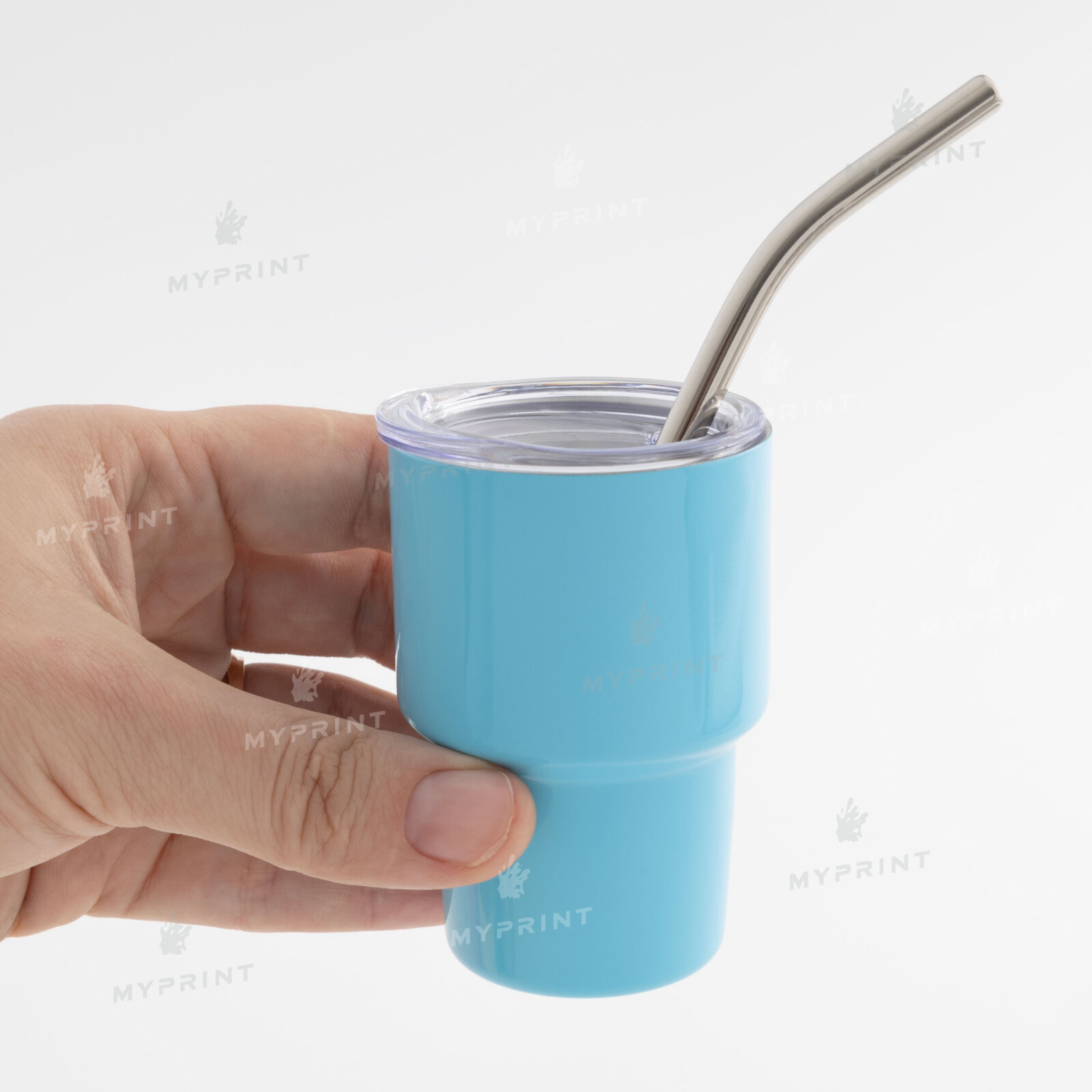 - Термостакан для сублимации с металлической трубочкой голубой 70 мл