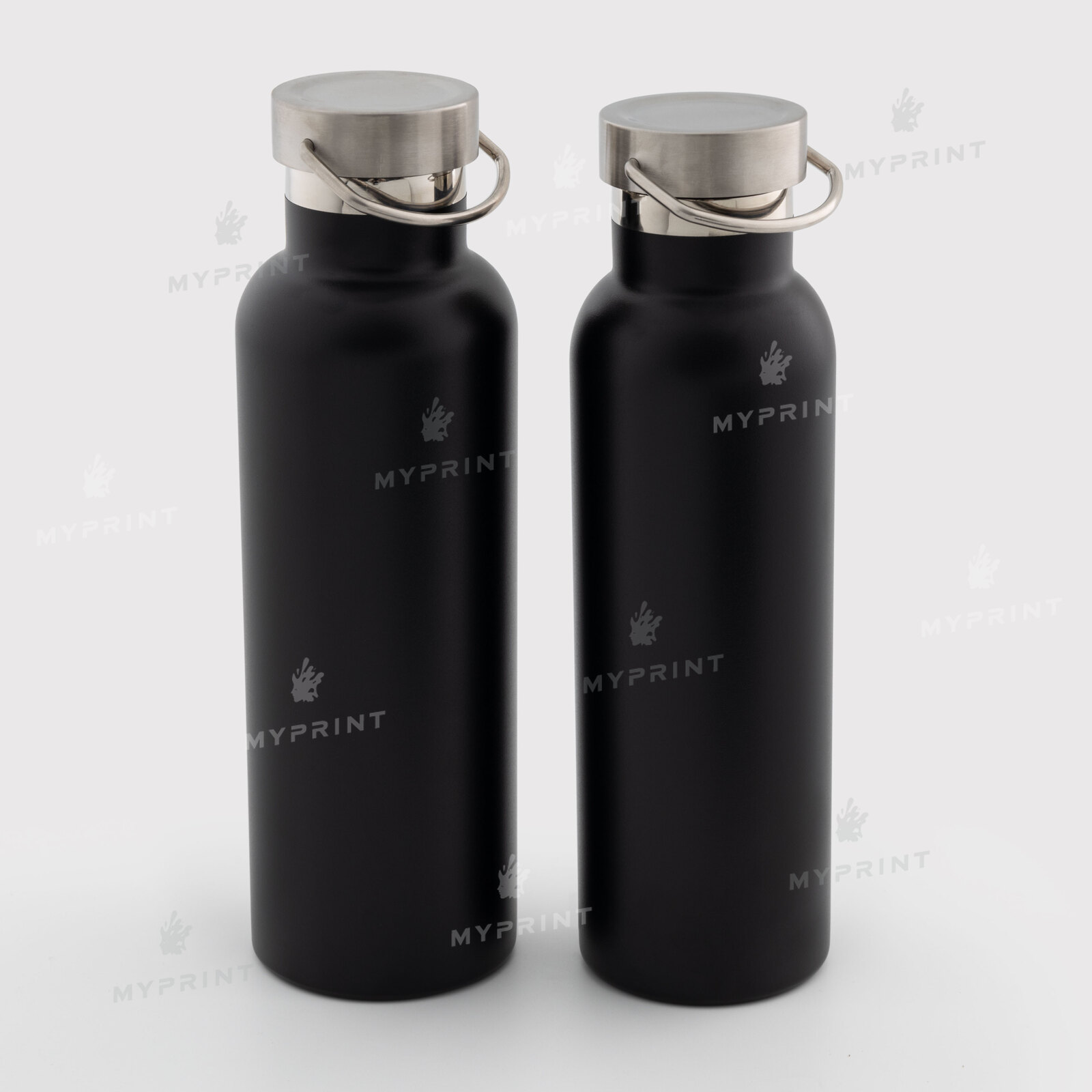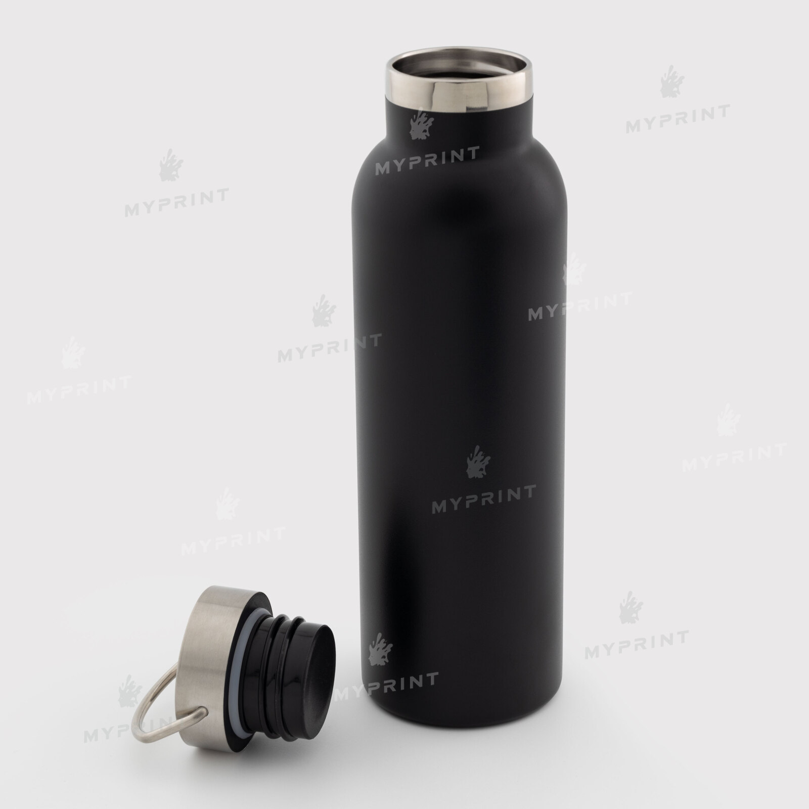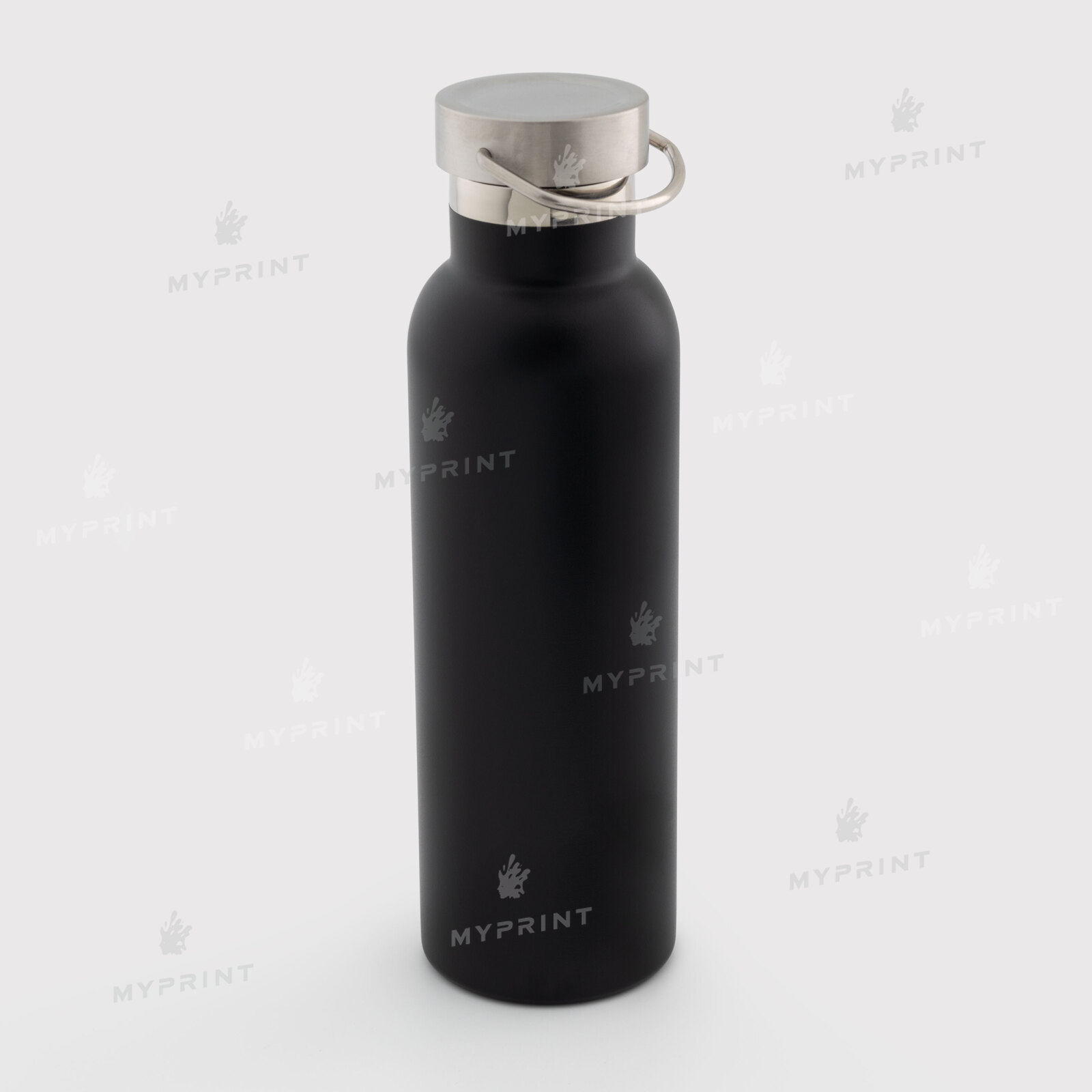 Термобутылка с металлической крышкой и ручкой матовая черная 750 мл (10608)