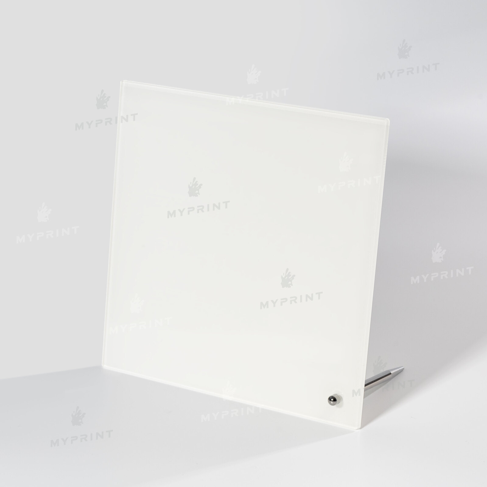 - Акрил для сублимации с металлической опорой глянцевый белый 203,2*203,2 мм, толщина 4,5 мм