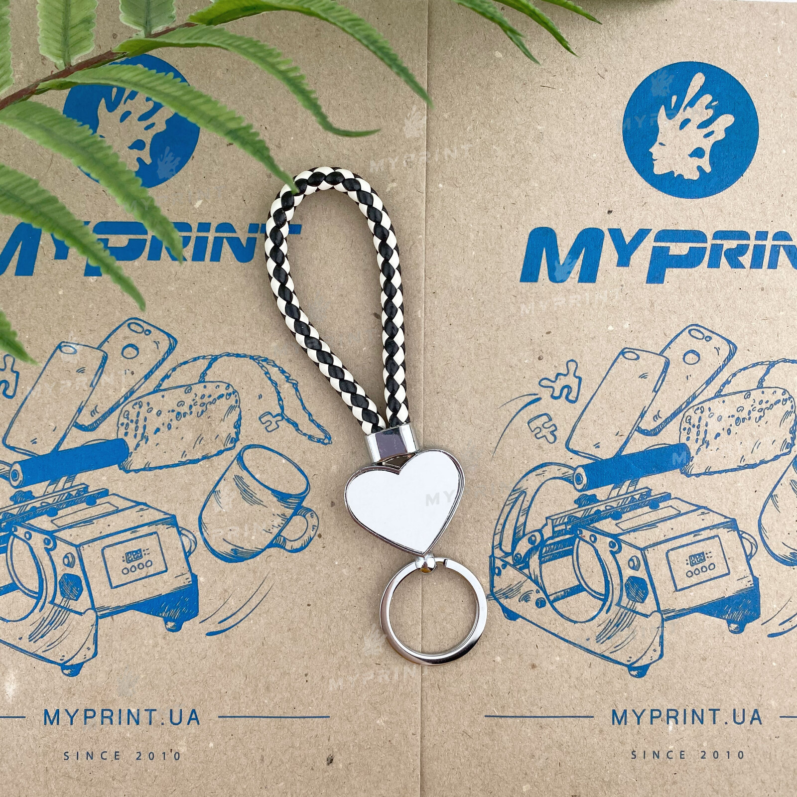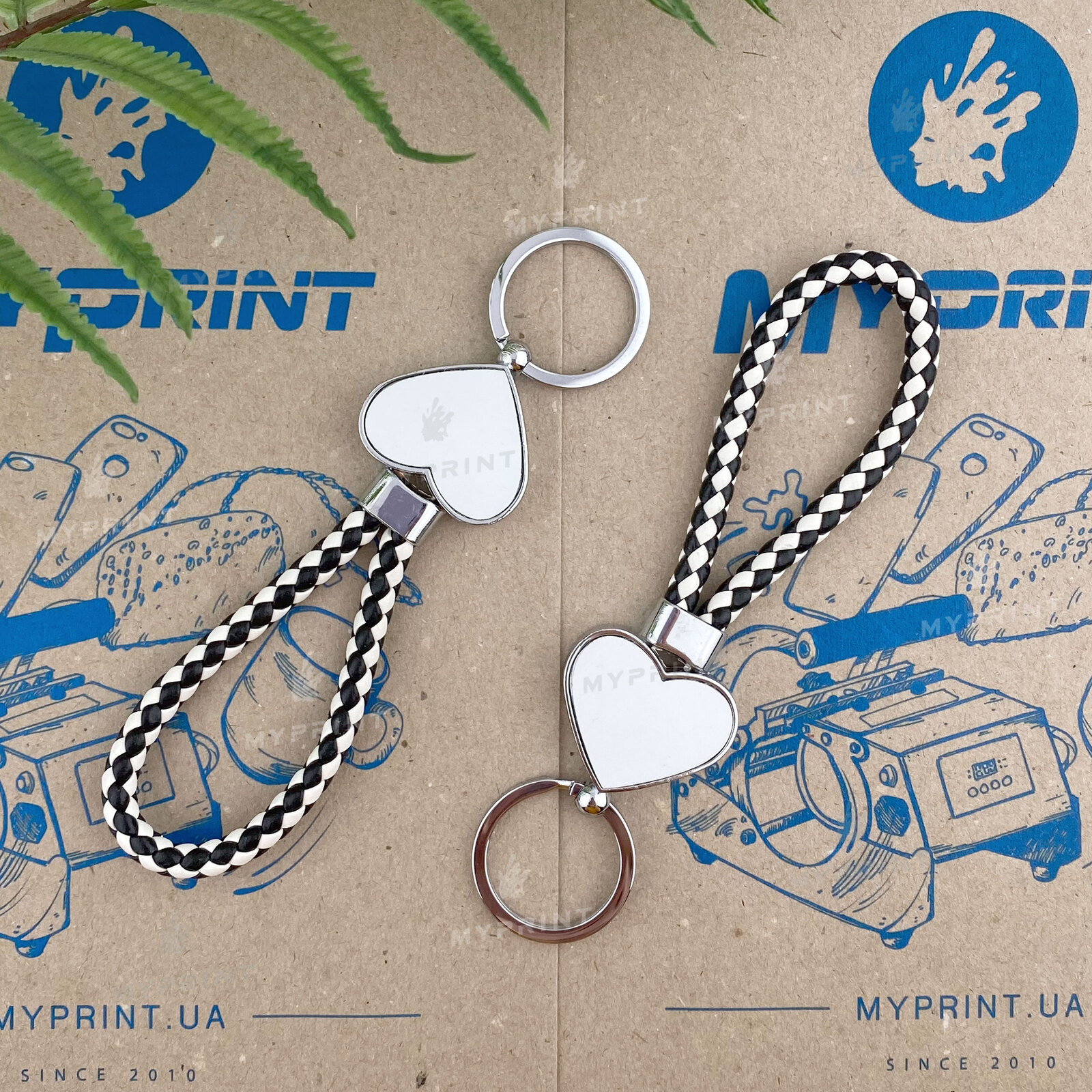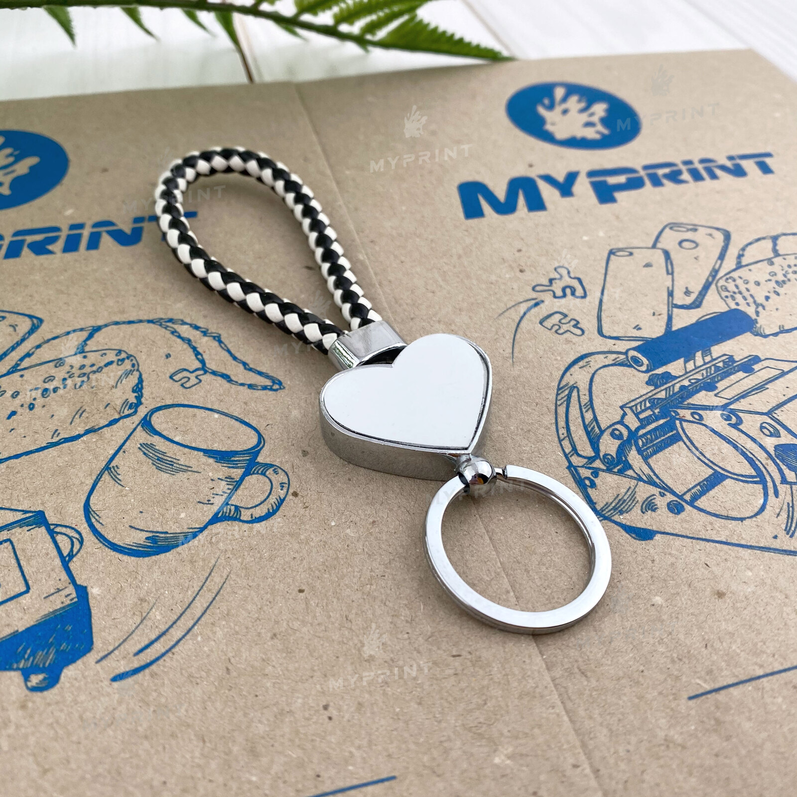 Процесс завершен. Брелок для сублимации в форме сердца двусторонний с черным / белым кожаным плетеным шнурком 30*25 мм теперь не просто заготовка, а готовое изделие с уникальным изображением или фотографией.