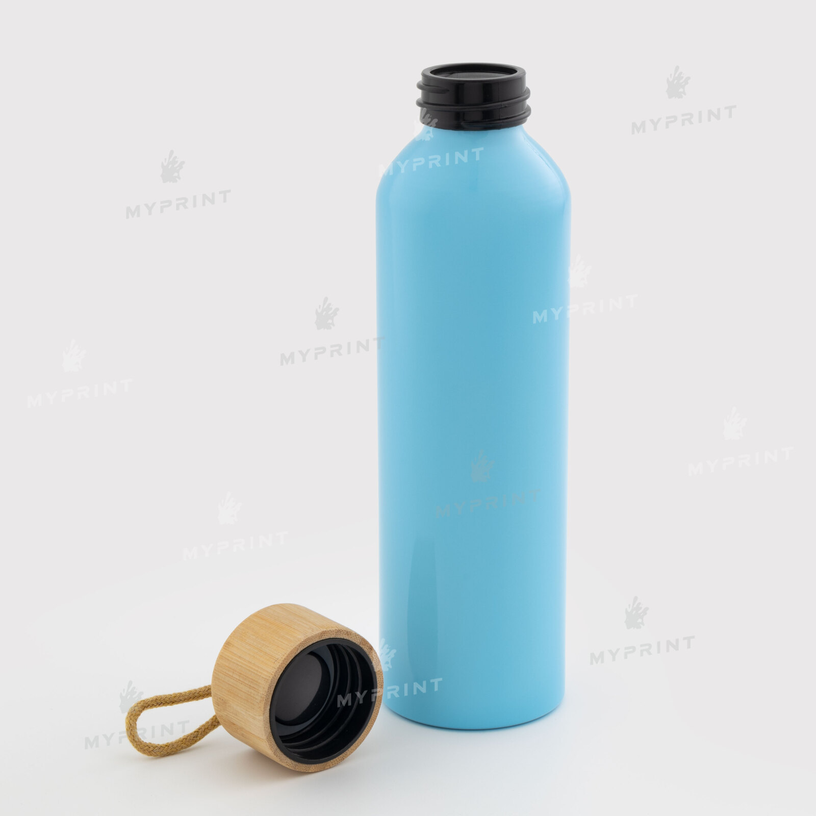 Процесс завершен. Бутылка для воды для сублимации с бамбуковой крышкой голубая 600 мл теперь не просто заготовка, а готовое изделие с уникальным изображением или фотографией.