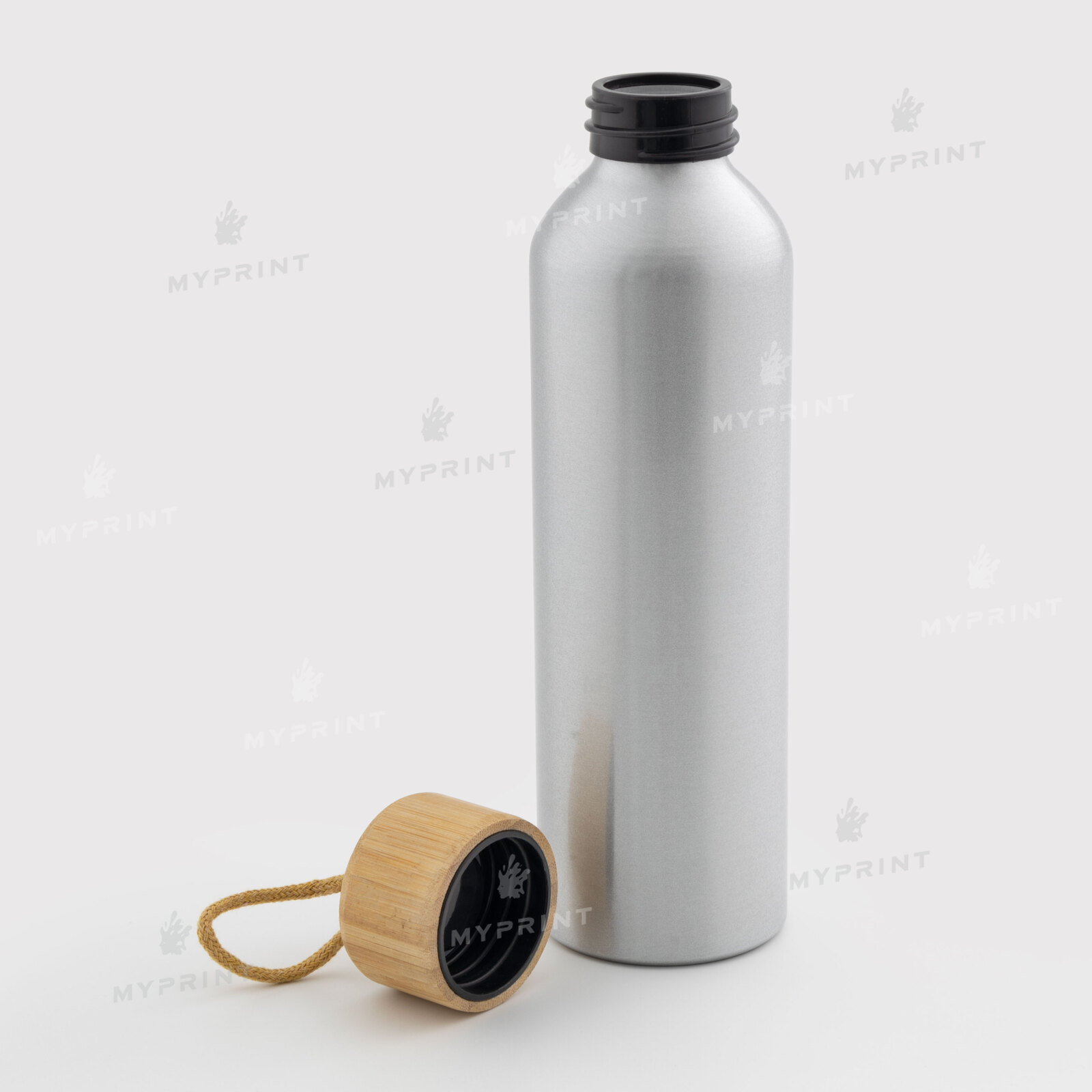 - Бутылка для воды для сублимации с бамбуковой крышкой серебристая 600 мл