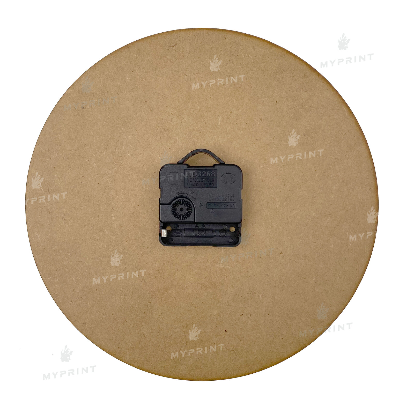 Процесс завершен. Часы для сублимации МДФ круглые настенные диаметр 200 мм, толщина 5 мм теперь не просто заготовка, а готовое изделие с уникальным изображением или фотографией.