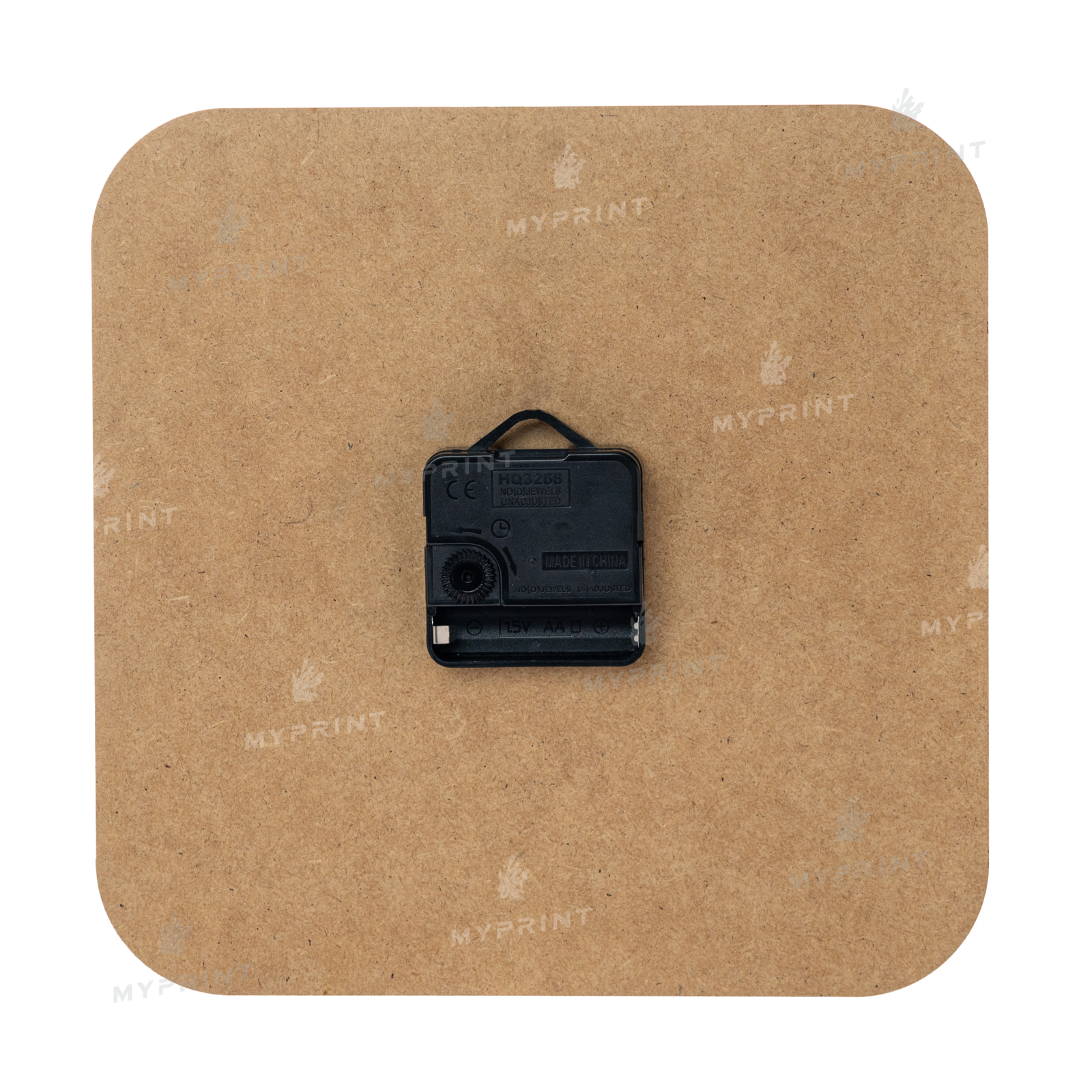 Процесс завершен. Часы для сублимации МДФ квадратные настенные 240*240 мм, толщина 5 мм теперь не просто заготовка, а готовое изделие с уникальным изображением или фотографией.