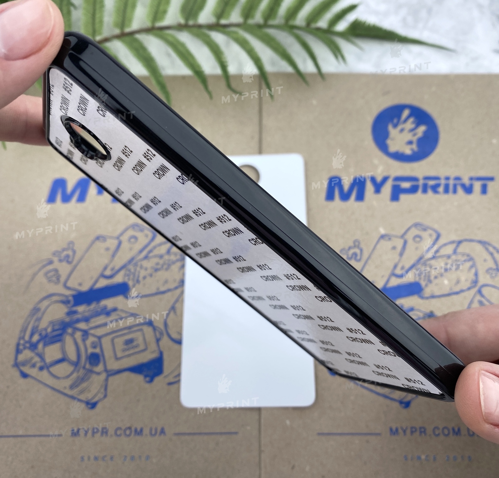 - Снимаем с заготовки чехла защитную пленку, под которой нанесен клеевой слой, и приклеиваем пластину к чехлу.