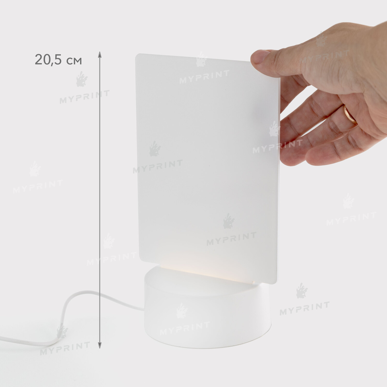 - Акриловая фоторамка для сублимации с LED-подсветкой и пластиковой подставкой прямоугольная