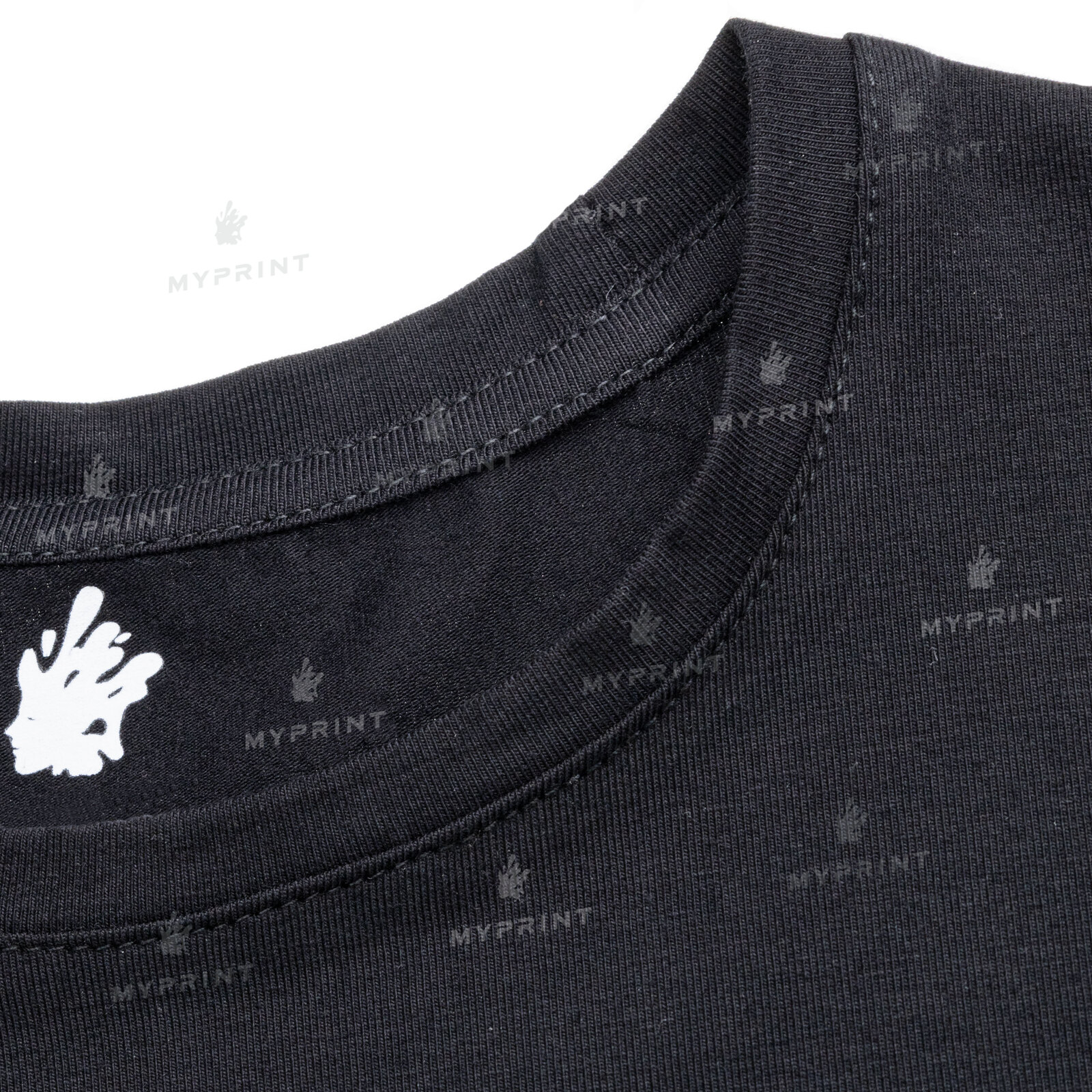 Нанести изображение на Футболка дитяча бавовна / еластан 170 г/м², чорна, 146 (9561) можно методом DTF печати и термотрансфера.