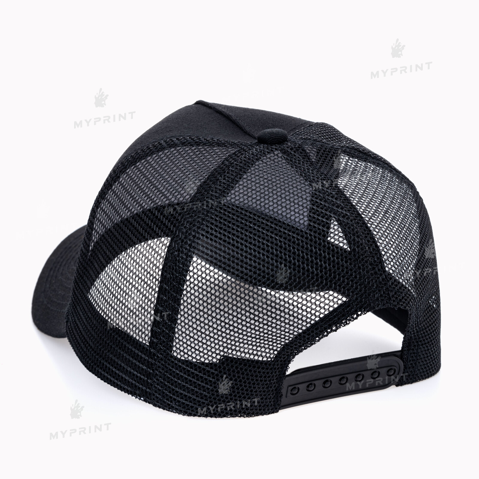 Процесс завершен. Кепка пятиклинка хлопок с сеткой черная теперь не просто заготовка, а готовое изделие с уникальным изображением или фотографией.