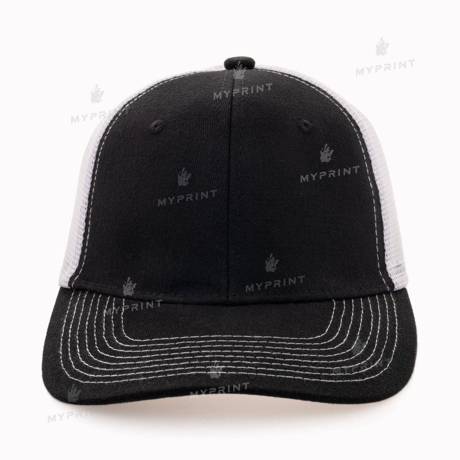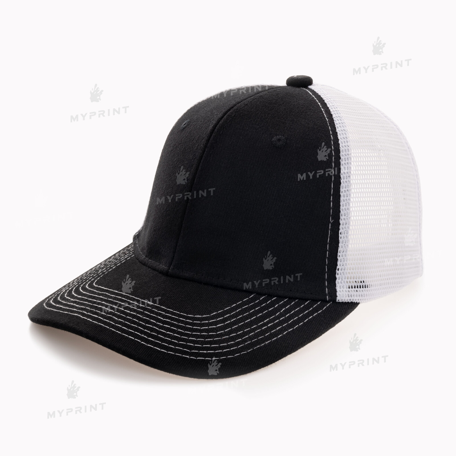 Нанести изображение на Кепка шестиклинка хлопок черная с белой сеткой можно методом DTF печати и термотрансфера.