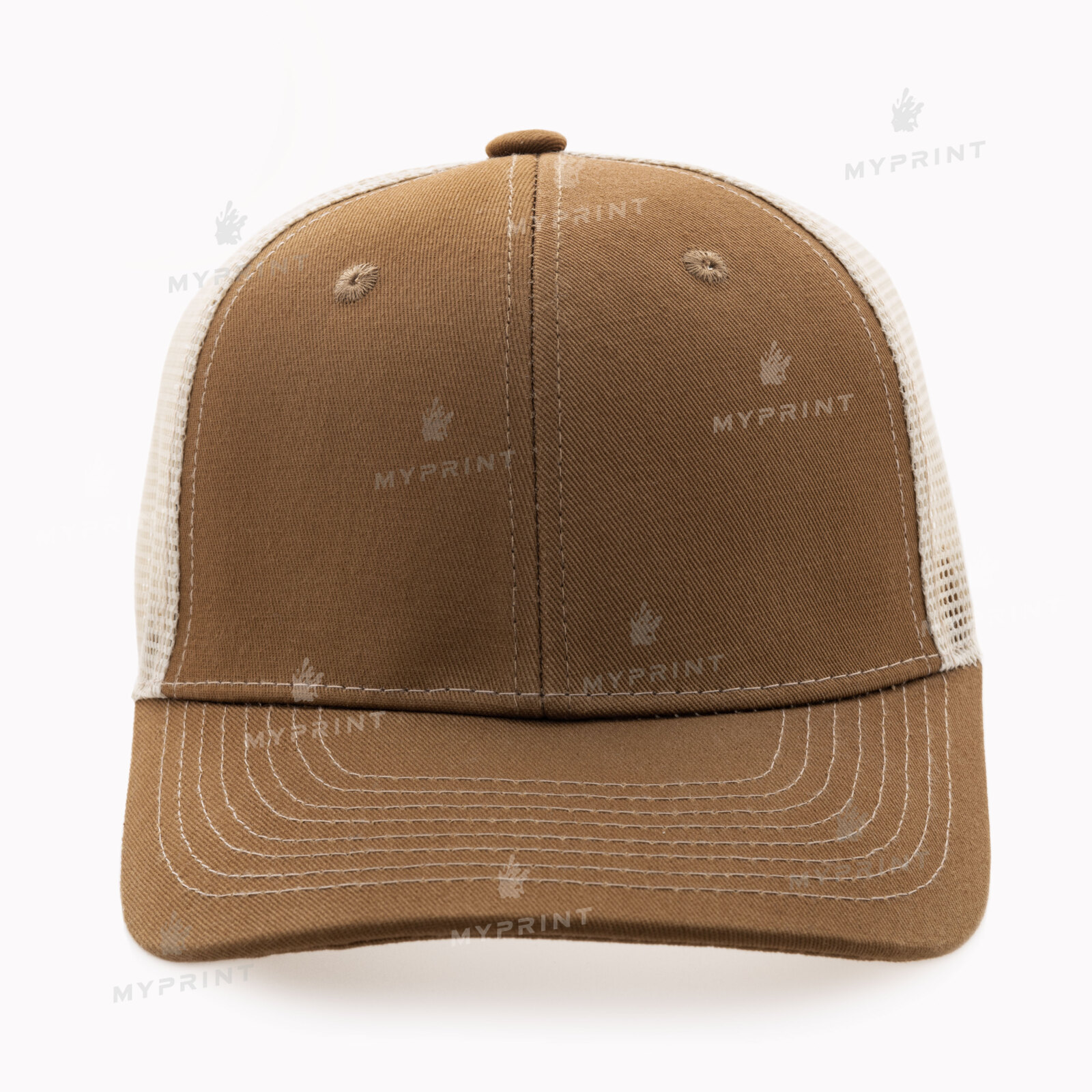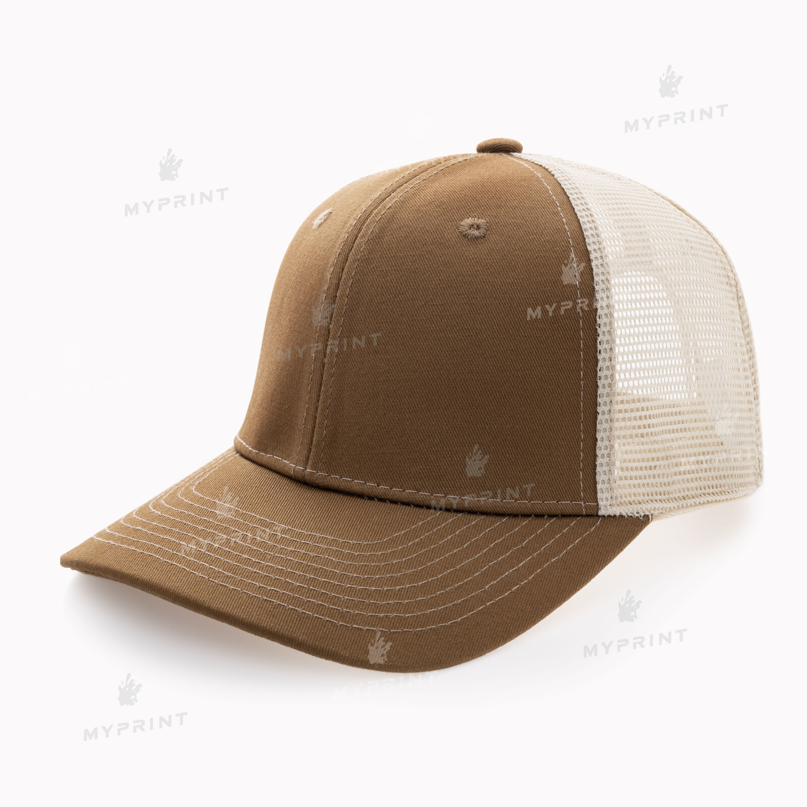 Процесс завершен. Кепка шестиклинка для термопереноса хлопок коричневая с коричневой сеткой теперь не просто заготовка, а готовое изделие с уникальным изображением или фотографией.