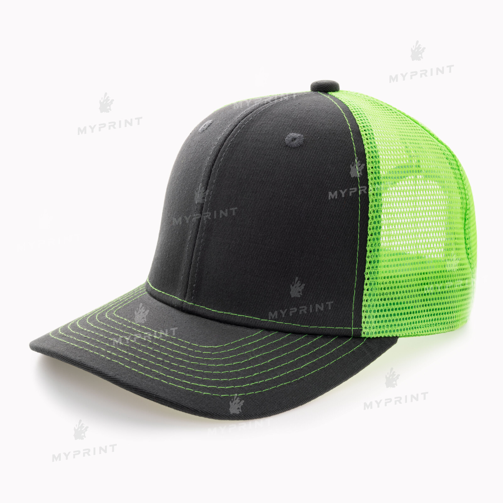 Нанести изображение на Кепка шестиклинка хлопок серая с салатовой сеткой можно методом DTF печати и термотрансфера.