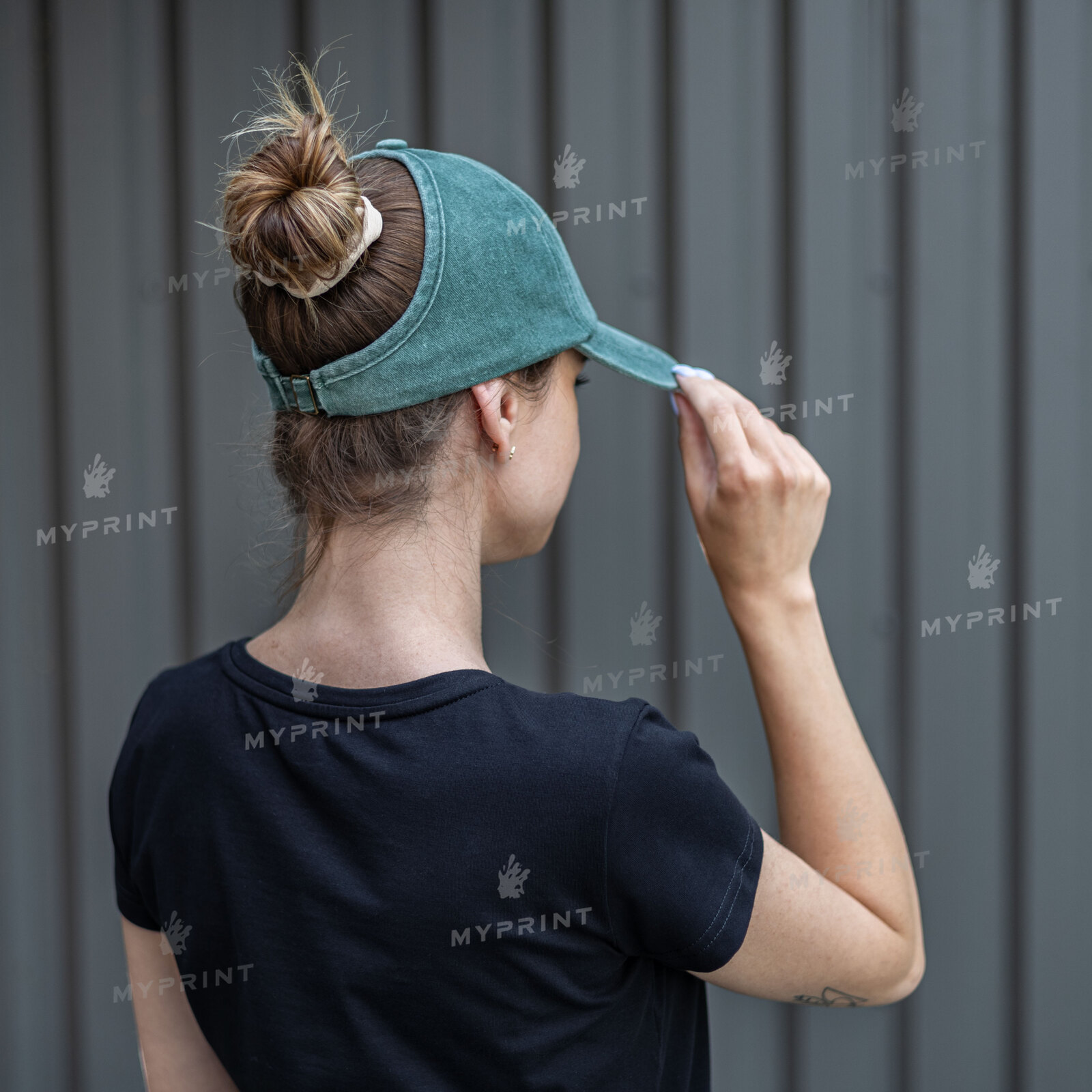 Процесс завершен. Кепка шестиклинка хлопок Vintage с отверстием для волос потертая зеленая теперь не просто заготовка, а готовое изделие с уникальным изображением или фотографией.