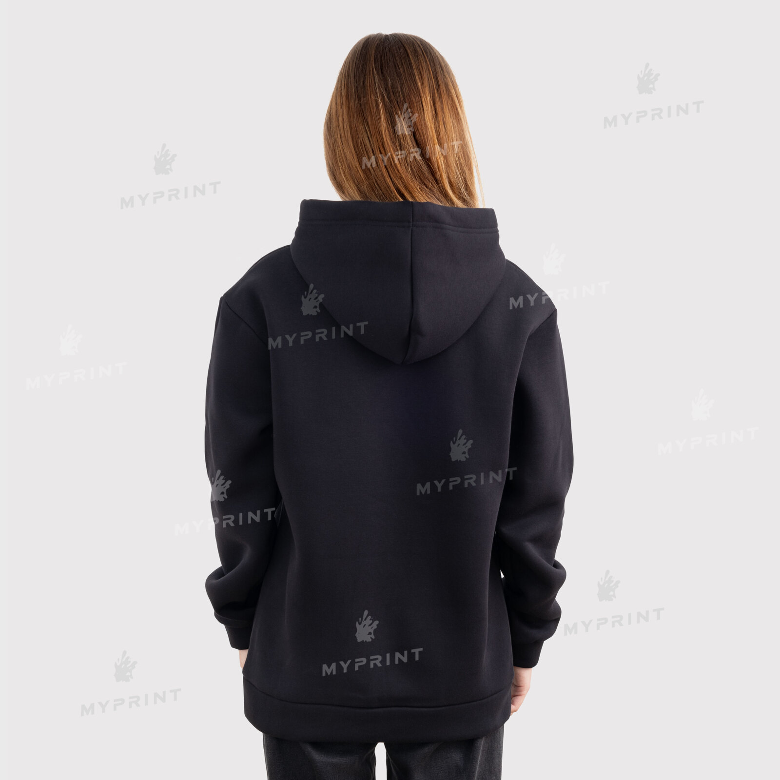 - Худи для печати с карманом унисекс трехнитка с начесом 300 г/м², черное, S