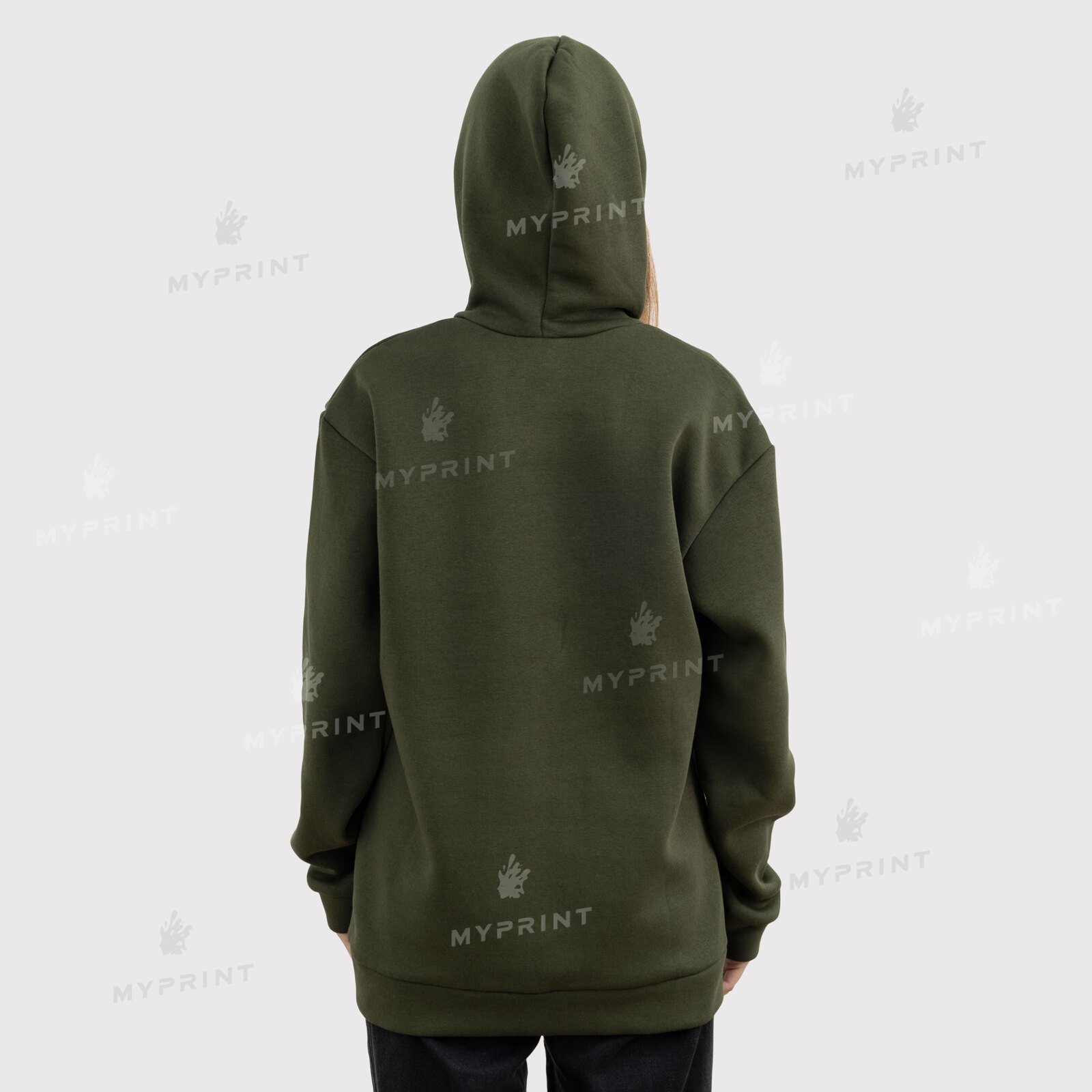 - Худи для печати с карманом унисекс трехнитка с начесом 300 г/м², оливковое, XS