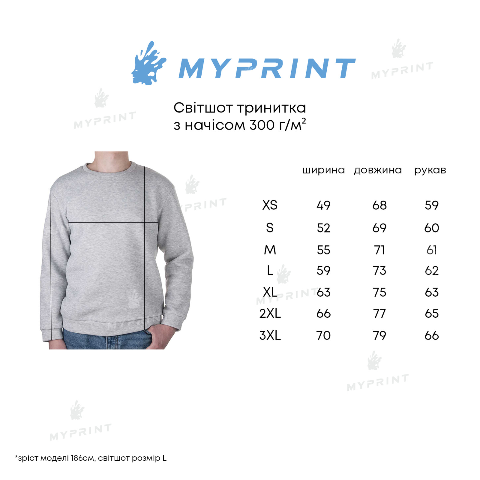 - Свитшот для печати унисекс трехнитка с начесом 300 г/м², серый, S