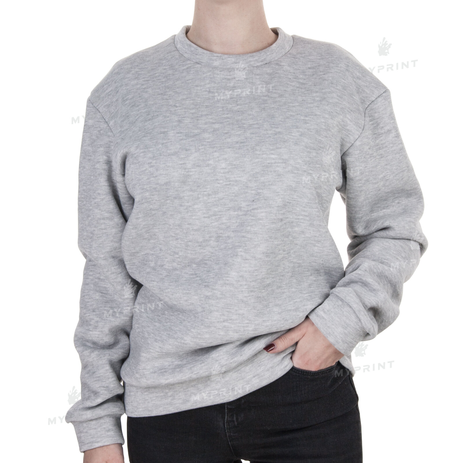 Описание Свитшот для печати унисекс трехнитка с начесом 300 г/м², серый, S (9013)