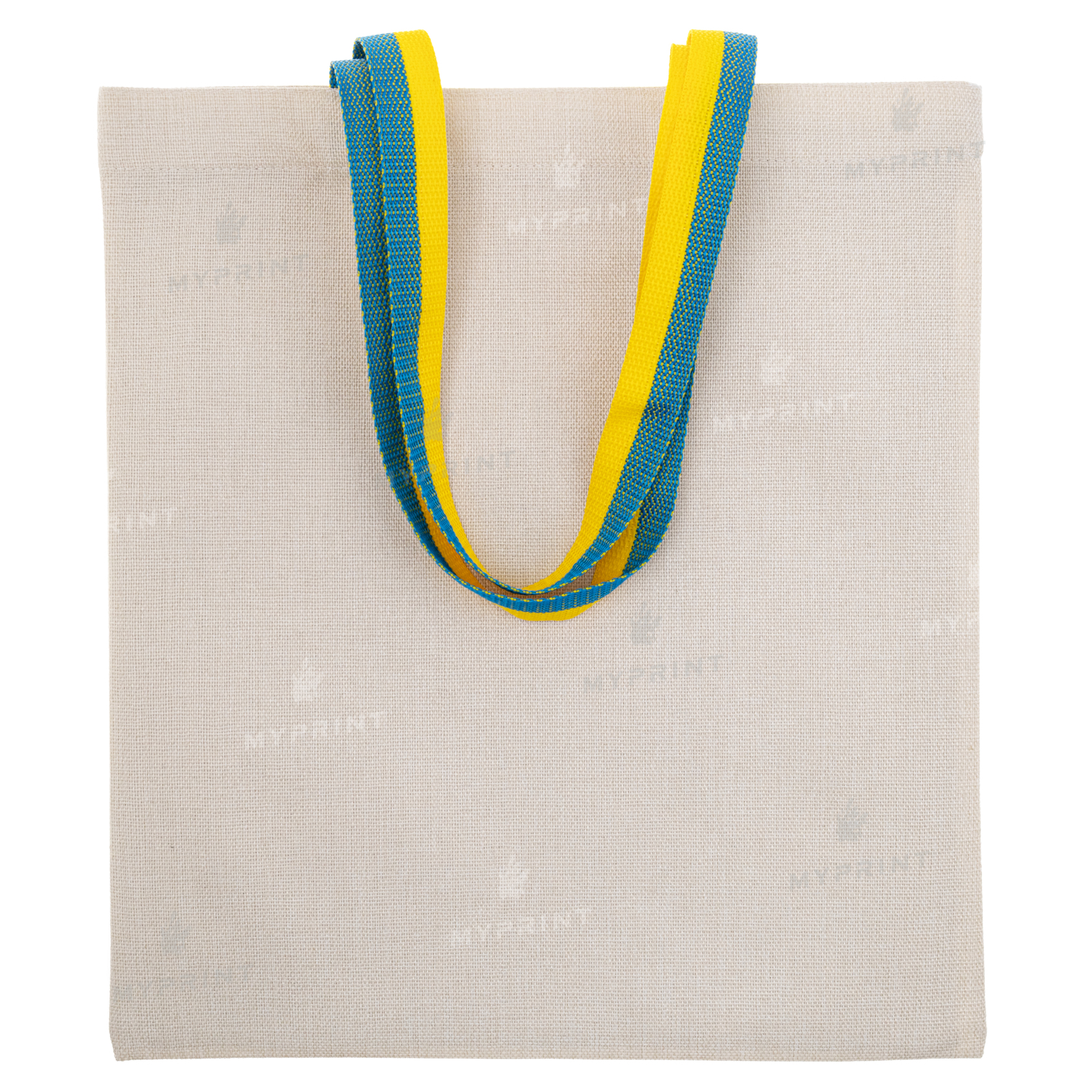 - Шоппер для сублимации льняной вертикальный с желто-голубыми ручками 35*38,5 см