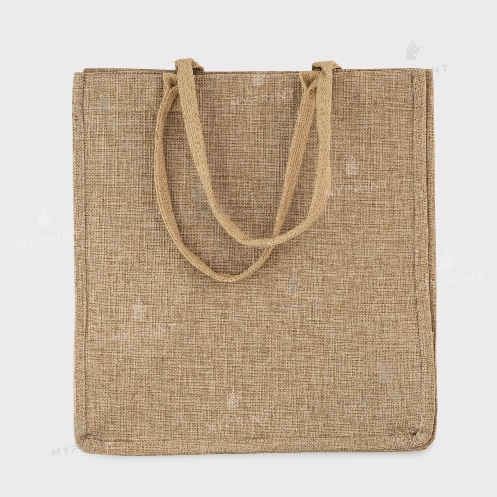Процесс завершен. Сумка для сублимации (Tote bag) льняная бежевая 30*32,5*18,5 см теперь не просто заготовка, а готовое изделие с уникальным изображением или фотографией.