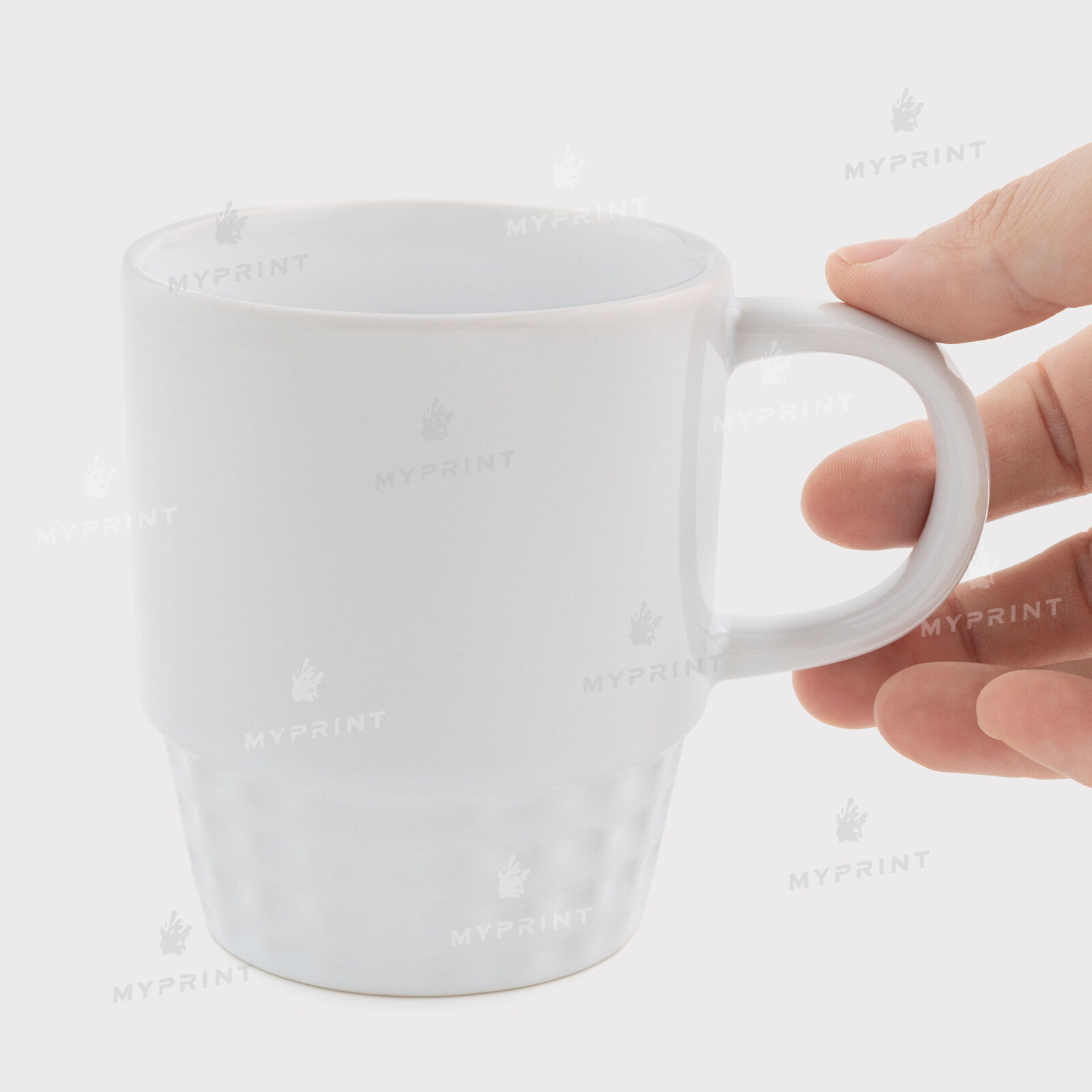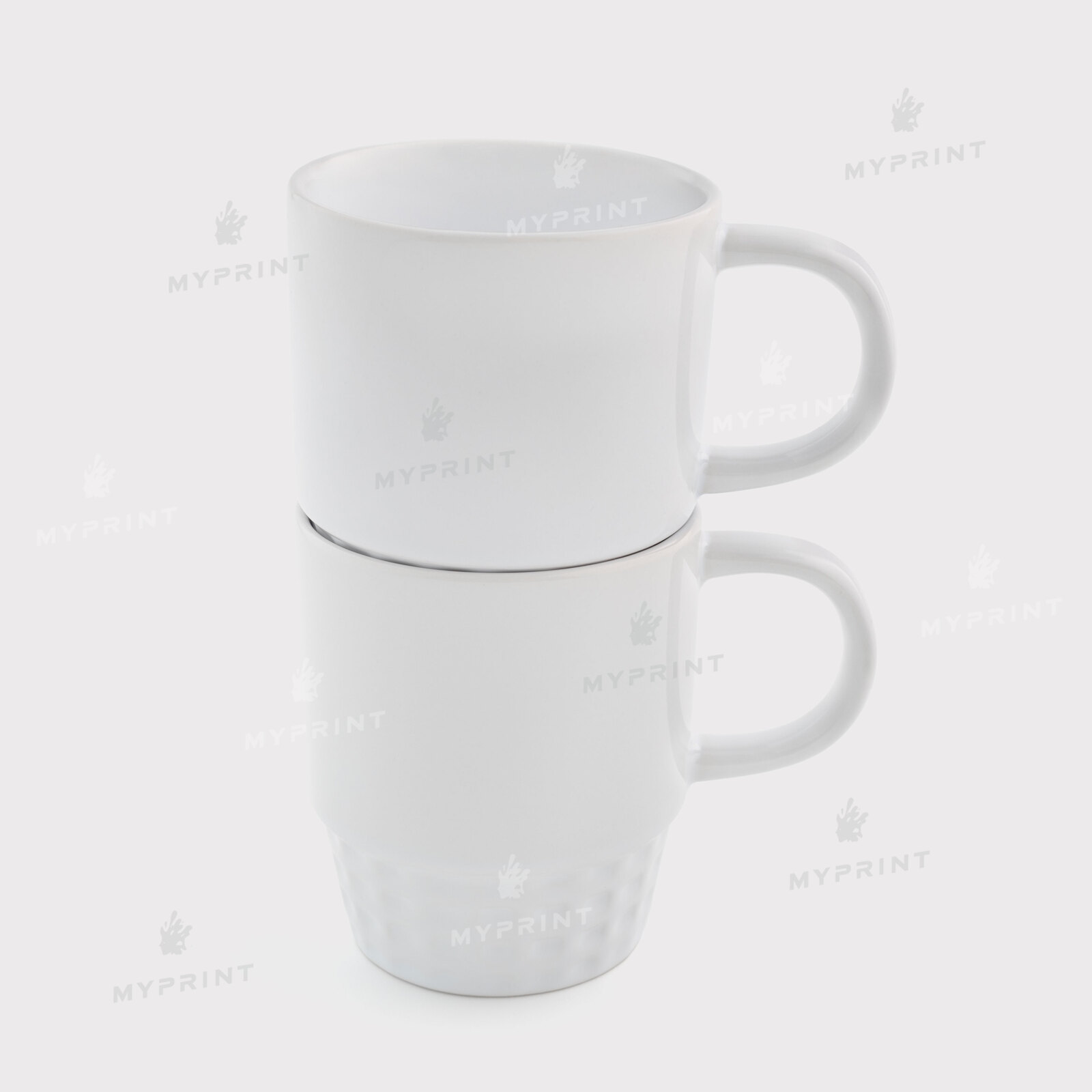- Кружка для сублимации белая складывающаяся одна на другую рифленая снизу (300 мл)
